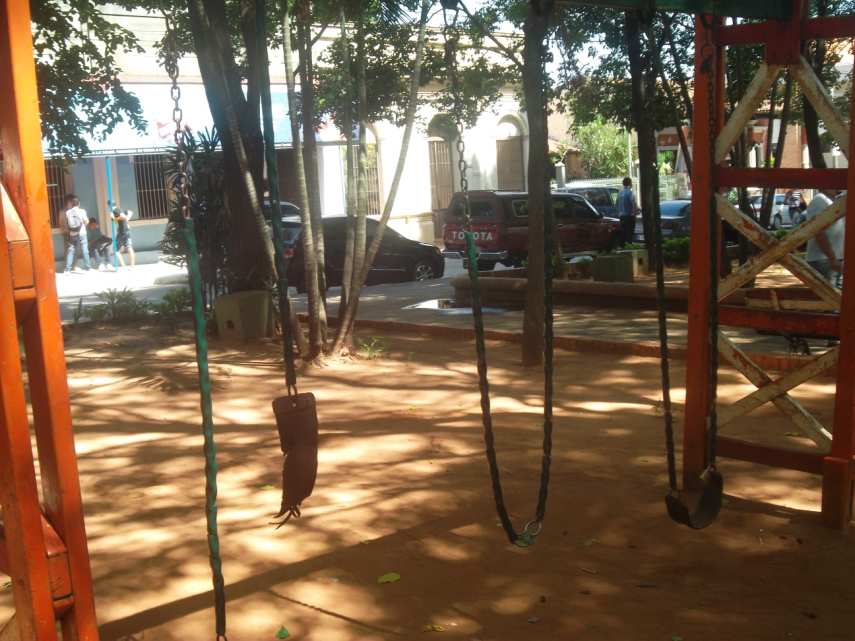 Ubicada en uno de los lugares más transitados, frente a la histórica iglesia de la ciudad, la plaza presenta visibles signos de abandono, en cuanto a comodidades y recreación de los niños.