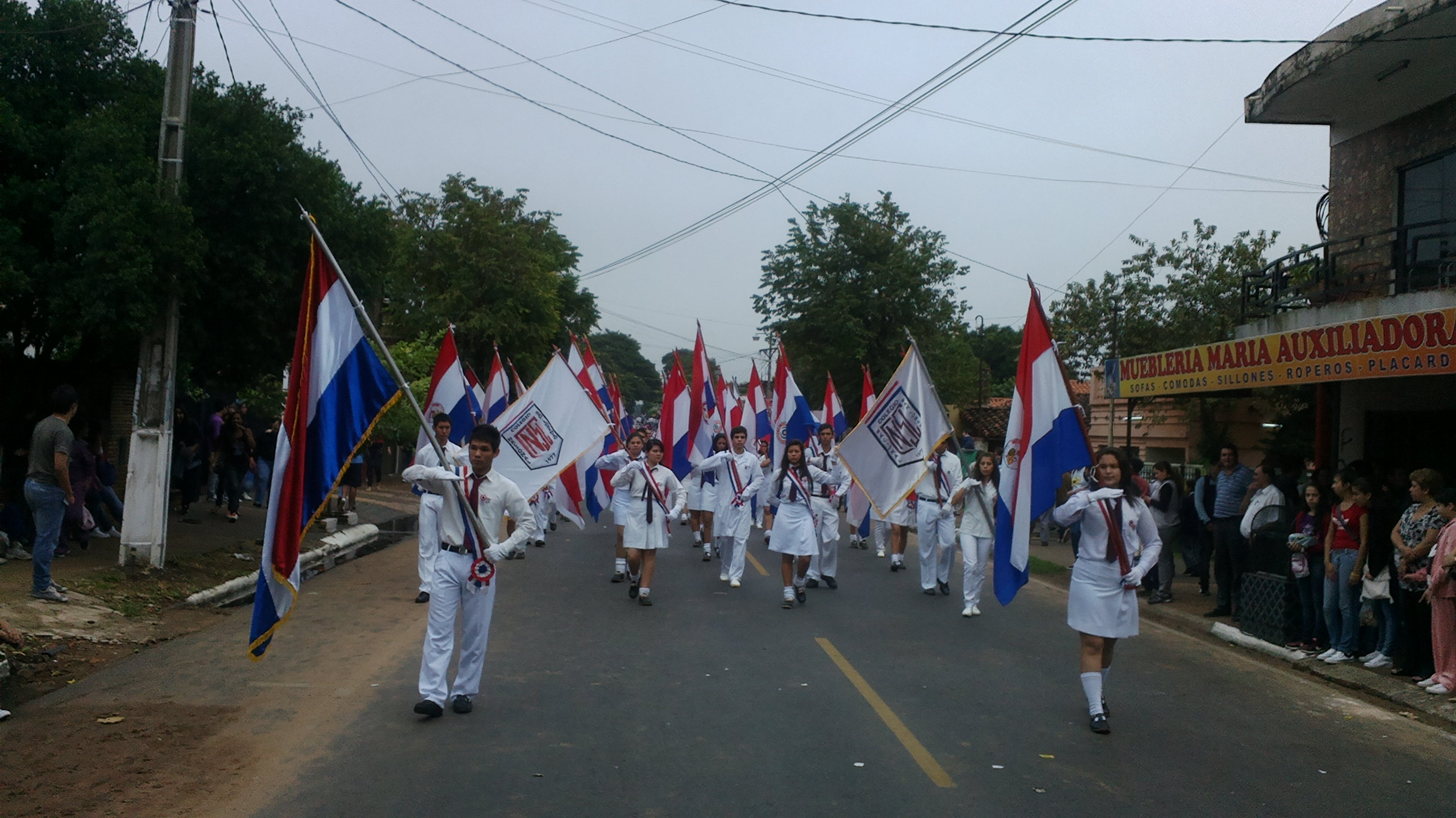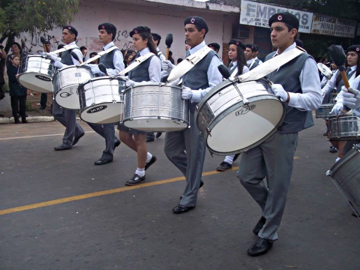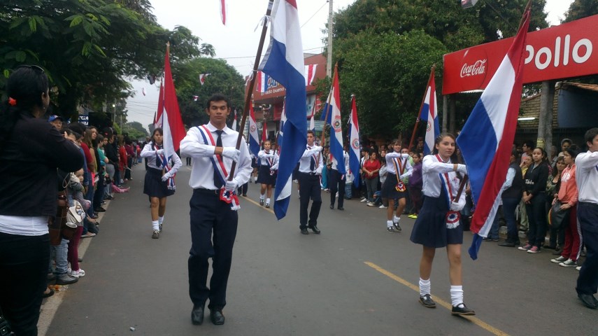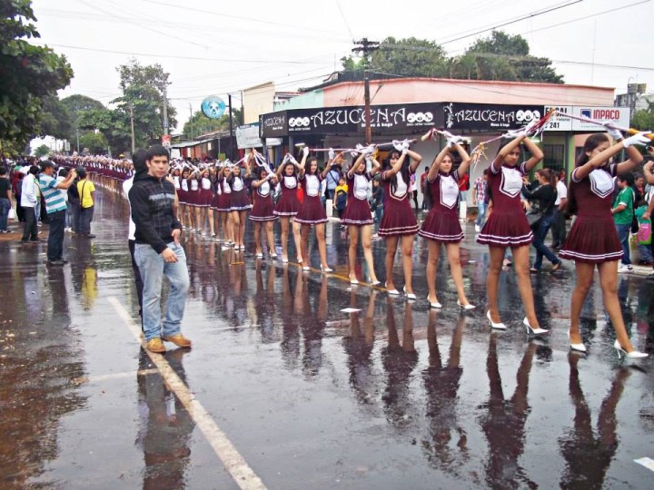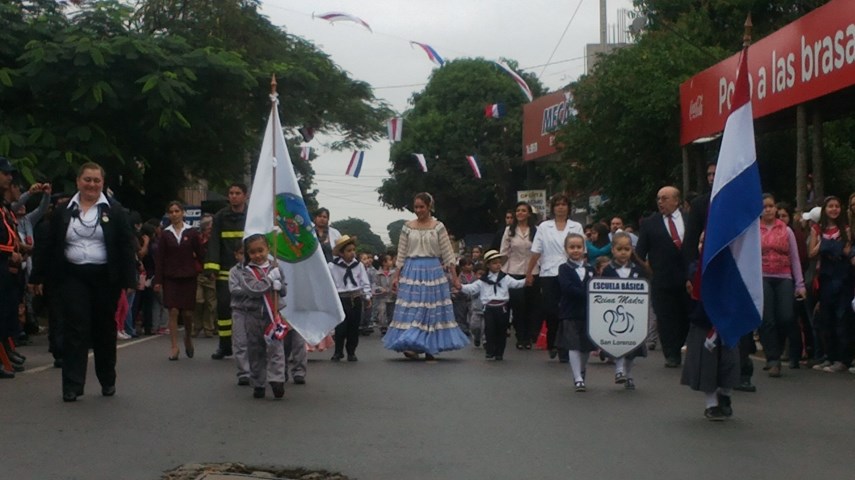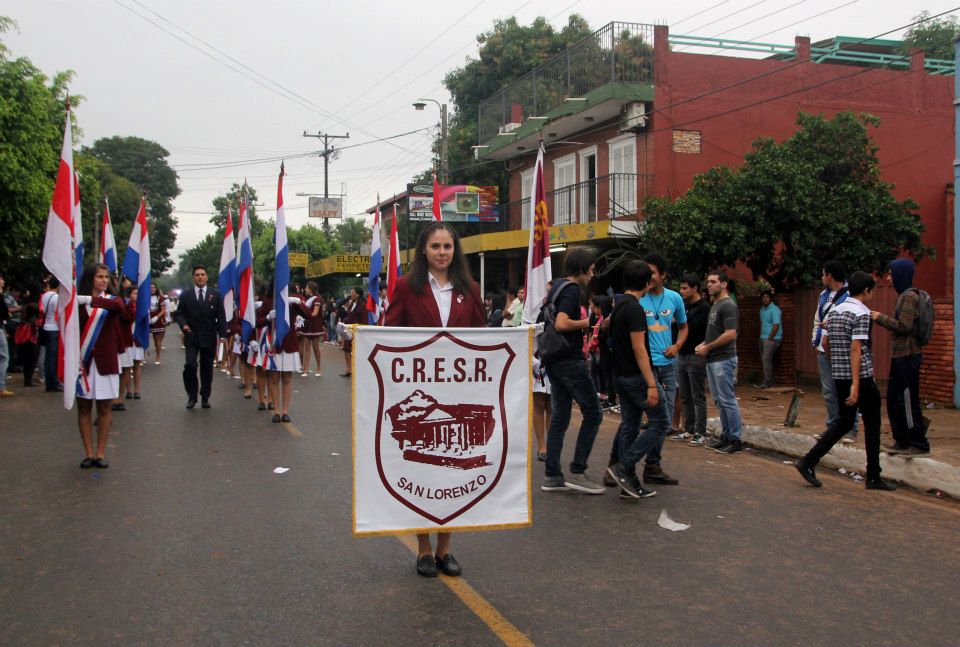 La marcha estudiantil realizada en San Lorenzo el lunes pasado, fue debajo de un constante cielo gris que aguantó hasta cerca del medio día, luego empezó a caer ligeras lloviznas hasta que fue convirtiéndose en gotas cada vez más intensas, no obstante las últimas cuatro instituciones educativas, entre ellos el siempre bien ponderado Centro Regional de Educación Saturio Ríos (CRESR), y organizaciones sociales desfilaron sin inconvenientes para cerrar el tradicional homenaje a la patria.