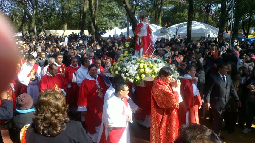 Luego de la santa misa, se realizó la procesión de la imagen del diácono Lorenzo, seguido de mucha gente acompañado de una banda de música militar, por las calles Dr Francia, Defensores del Chaco, España y luego calle España hasta el templo.