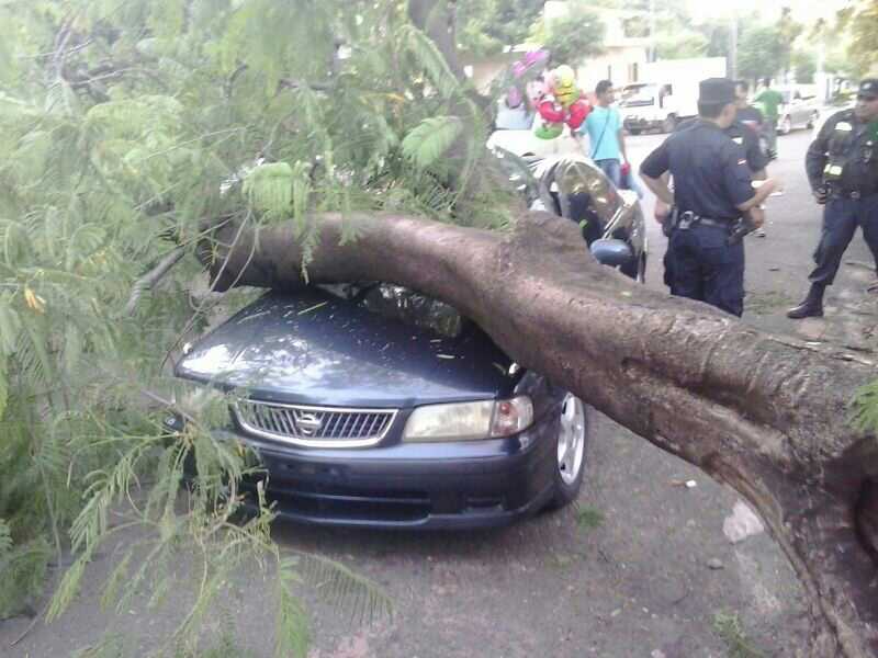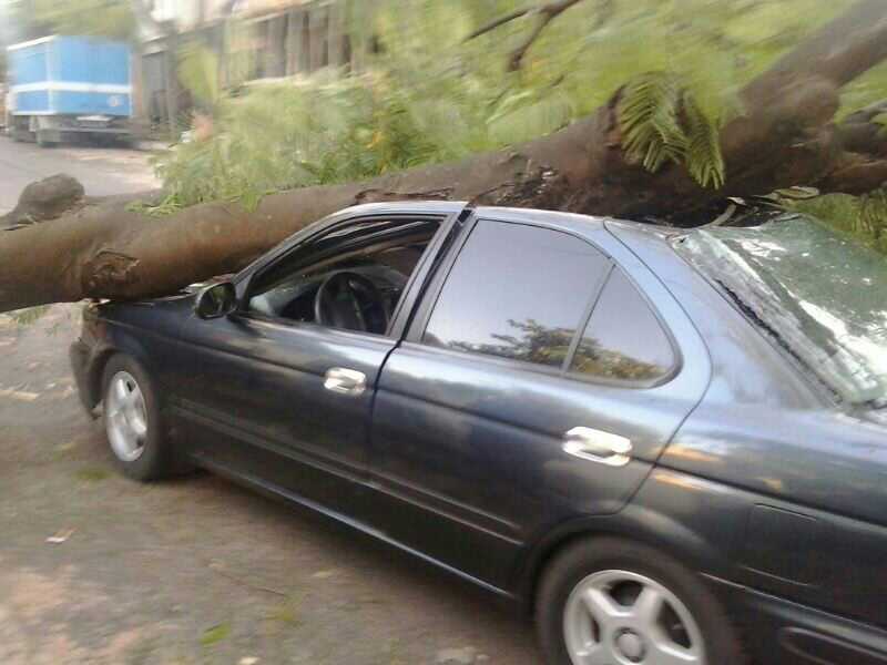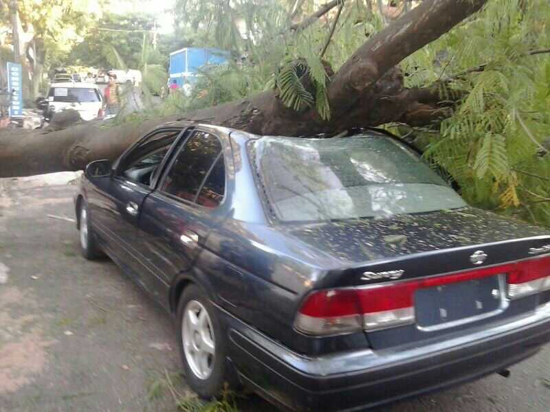 Entre las 18:30 y 19:00 horas de hoy cayó un viejo chivato sobre un automóvil de la marca Nissan en la calle Sgto Silva entre Cnel Bogado y San Lorenzo. El vehículo sufrió serios daños ya que el tronco principal del árbol cayó de pleno sobre el techo y capot. Bomberos Voluntarios y la policía estan en el lugar. El tránsito esta clausurado en la mencionada arteria.
