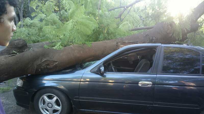 Hace instantes: Un árbol cayó sobre un automóvil en la zona del mercado