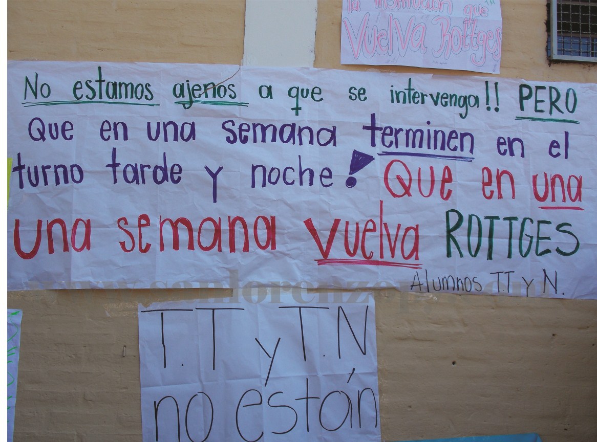 NO ESTAN EN CONTRA DE LA INTERVENCIÓN. Victoria Domínguez, madre de un alumno de la institución dejó sentado que acompañan a sus hijos en el reclamo de que la investigación no sobrepase los una semana y que no están en contra de la intervención porque eso traerá la verdad sobre el manejo del colegio “nos tomó por sorpresa esta intervención porque un profesor encargado de despacho quien nunca trabajo hizo una denuncia contra nuestro director Blas Rottges, no estamos ajeno a que este colegio sea intervenido, eso está bien porque eso lo que va a ser es disipar dudas, lo que si exigimos es que la intervención no alcance 90 días así como esta en el documento, eso ya es mucho que harán sin su director tanto tiempo?.