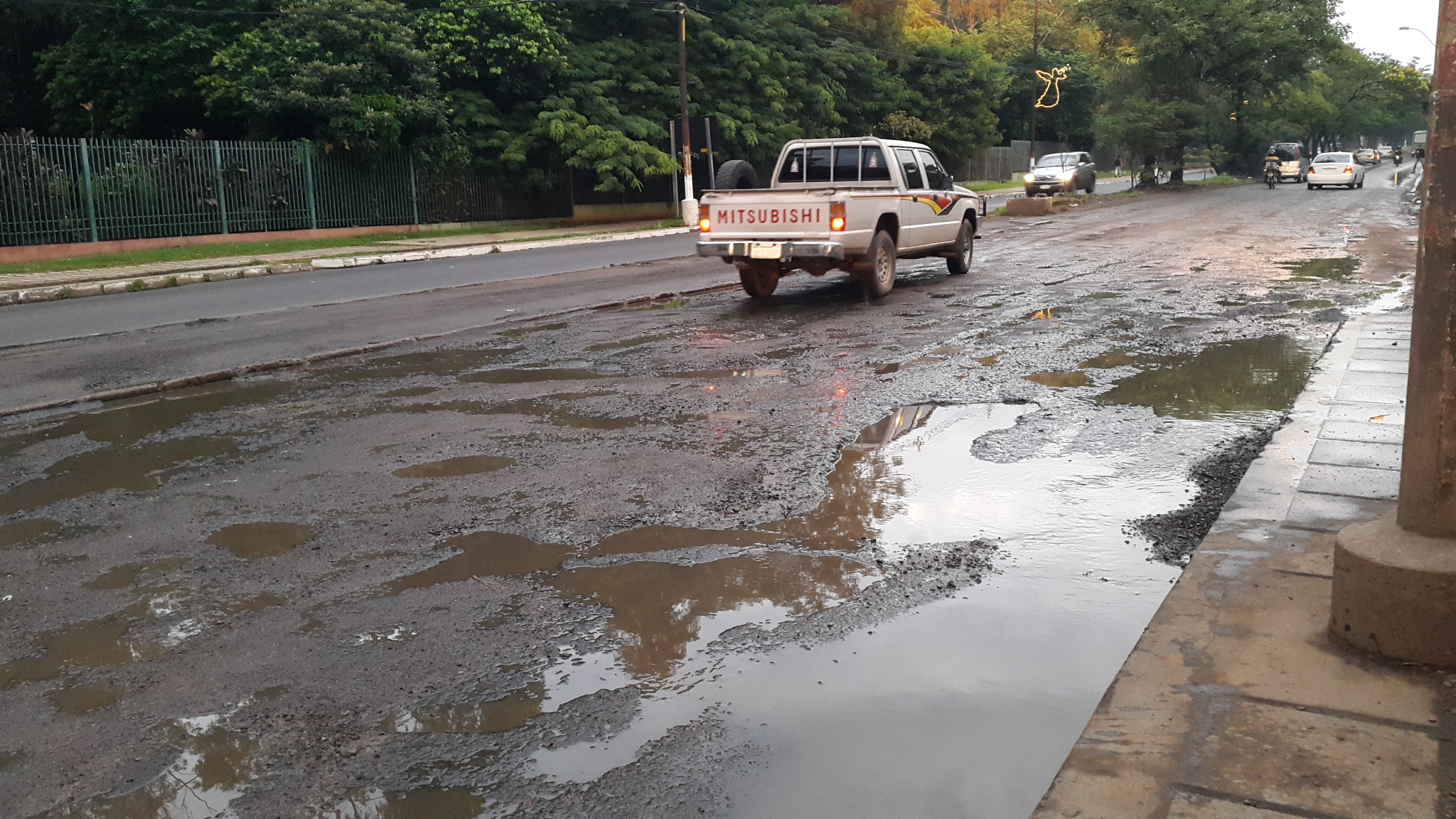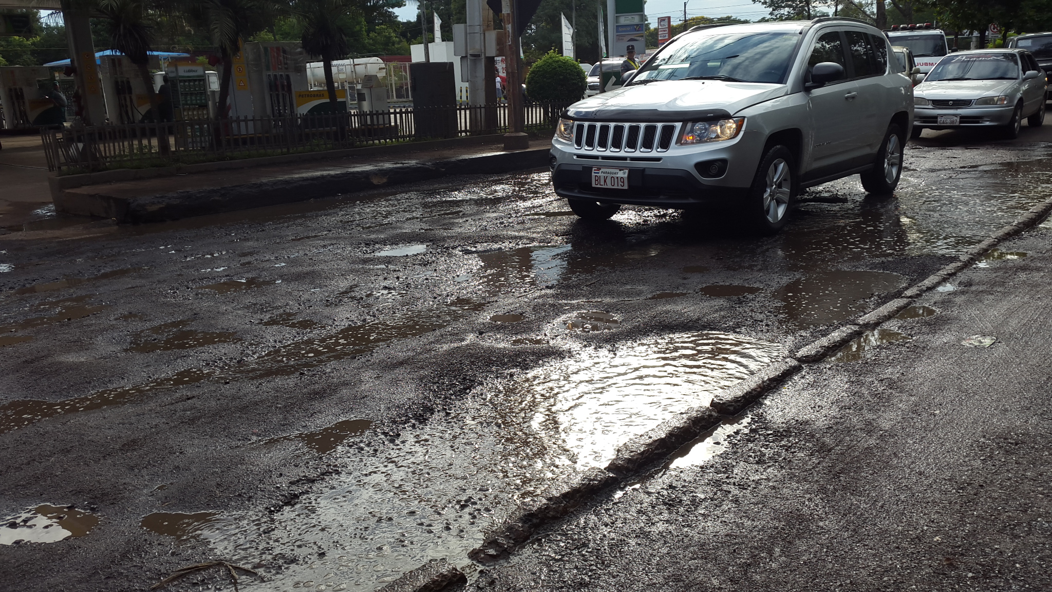 [box type=»shadow» ]A solo dos días de la supuesta reparación que realizó el MOPC al asfalto de la avenida Mcal López sector de yberá, hoy de vuelta esta minado de baches que torna lento el tránsito automotor rumbo a la capital. La zona últimamente es caracterizada por la acumulación de aguas negras que proviene de un conocido Shopping que está a unas 10 cuadras del lugar.[/box][divider]