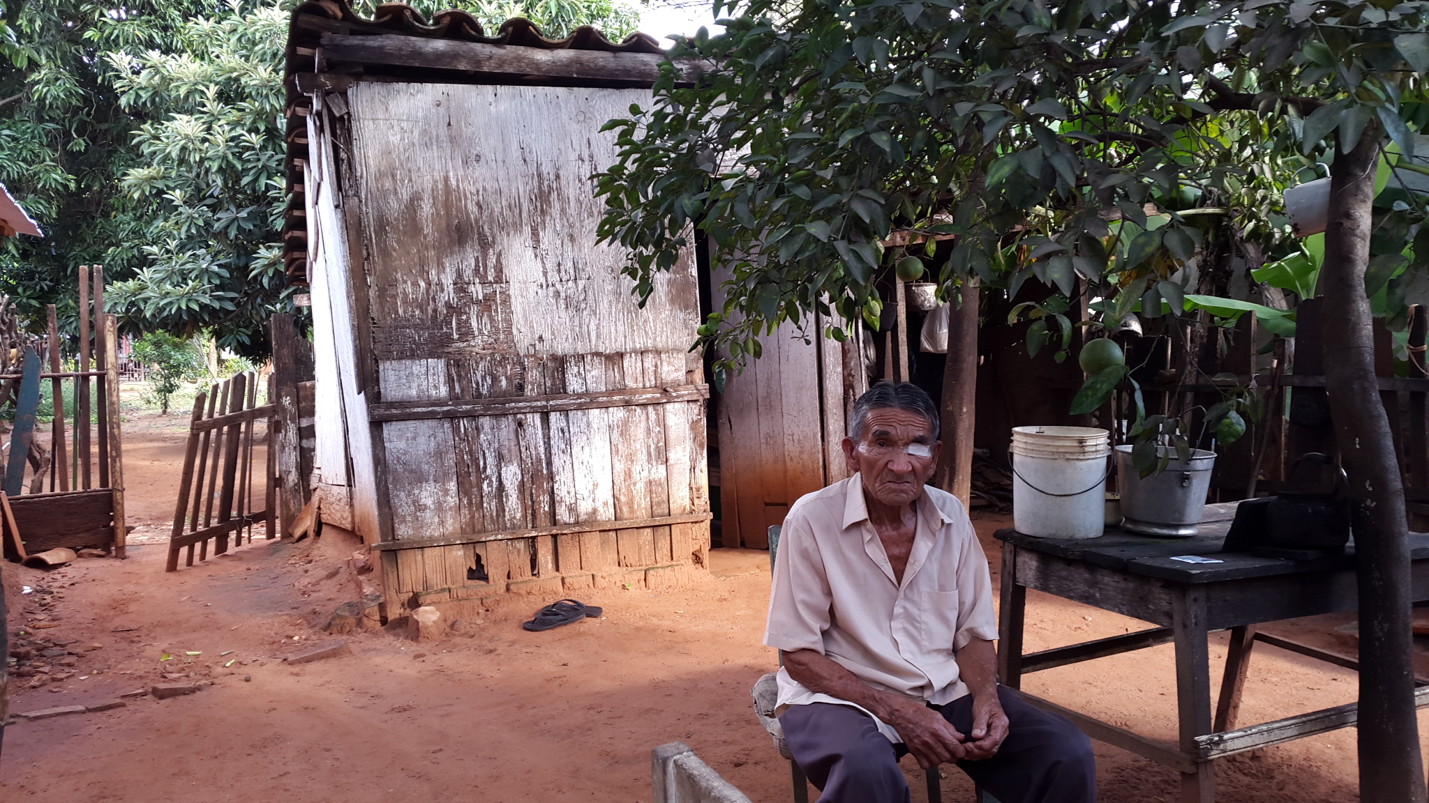 Don Eulogio, a pesar de sus 85 años, con arrugas profundas, piel quemada por el sol y con sólo un ojo (el otro se tuvo que extirpar años anteriores) se nos mostró no como un hombre derrotado, más bien habla de sus necesidades con mucha valentía, y explicó que si bien hace trabajos de corpida y otro tipo de tareas caseras para sobrevivir, en éstos últimos tiempos tiene miedo a salir de su casa, ya que en la municipalidad cuando se anotó en el año 2012 para acceder a la pensión alimentaria que el Ministerio de Hacienda promete a los mayores de 65 años, le dijeron que en cualquier momento pasaran por su casa para el censo y que él debe estar. De ahí pasarón más de dos años pero los de hacienda jamás aparecieron.
