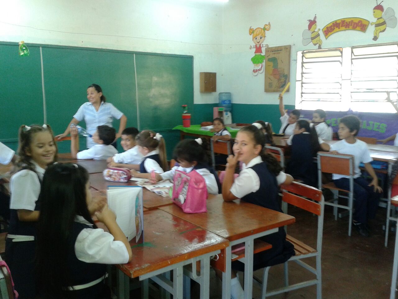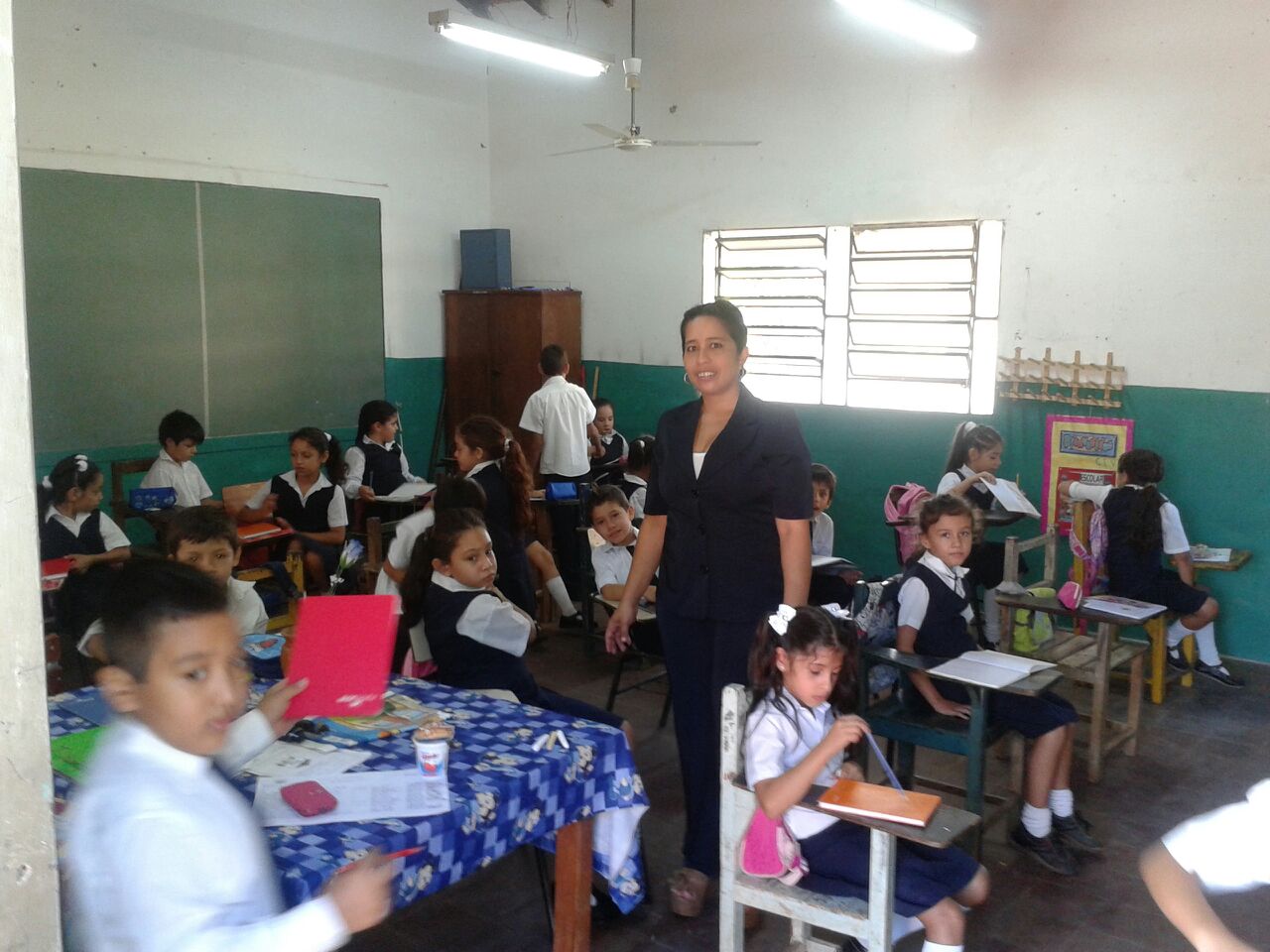 BUSCAN DONACION DE SILLAS. La profesora Pabla Martínez, informó a nuestro portal que a pesar de estar en un ambiente de mucha necesidad dentro de la institución, empezaron el año lectivo con mucha alegría y expectativa de lograr las urgentes mejoras que necesita la escuela, dijo también que la limpieza del predio se logró con el apoyo de la municipalidad, pero ahora lo más urgente es conseguir sillas, “el intendente envió un equipo de limpieza para el patio y esta impecable, estamos contentos, ahora buscamos donación de sillas, pues el número de alumnos supera las cifras de años anteriores y muchas de las que tenemos cumplieron su vida útil”.