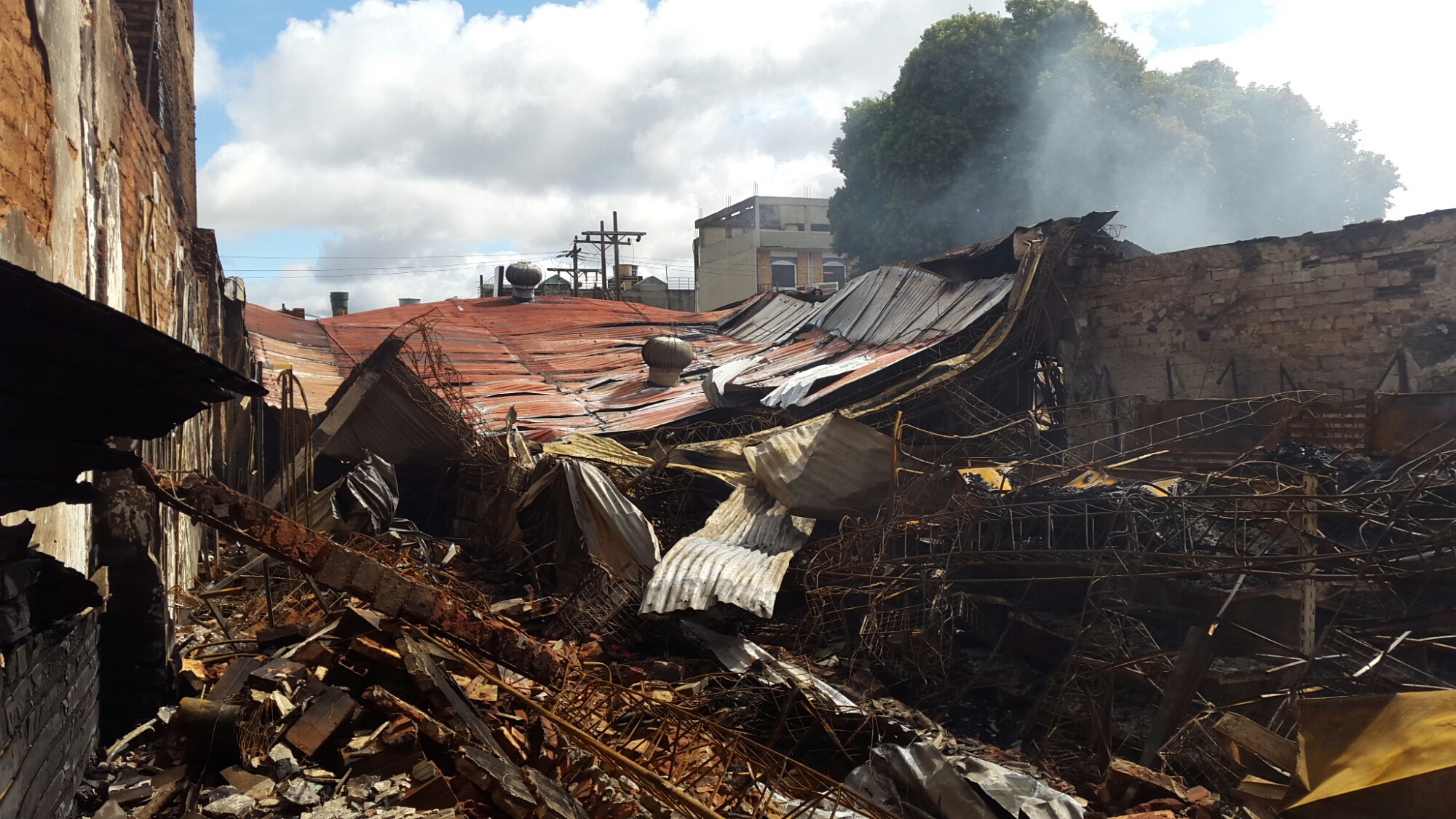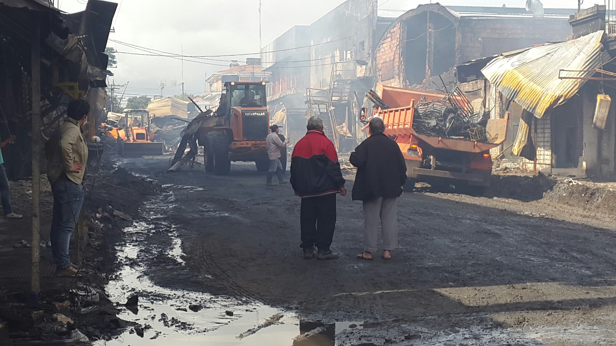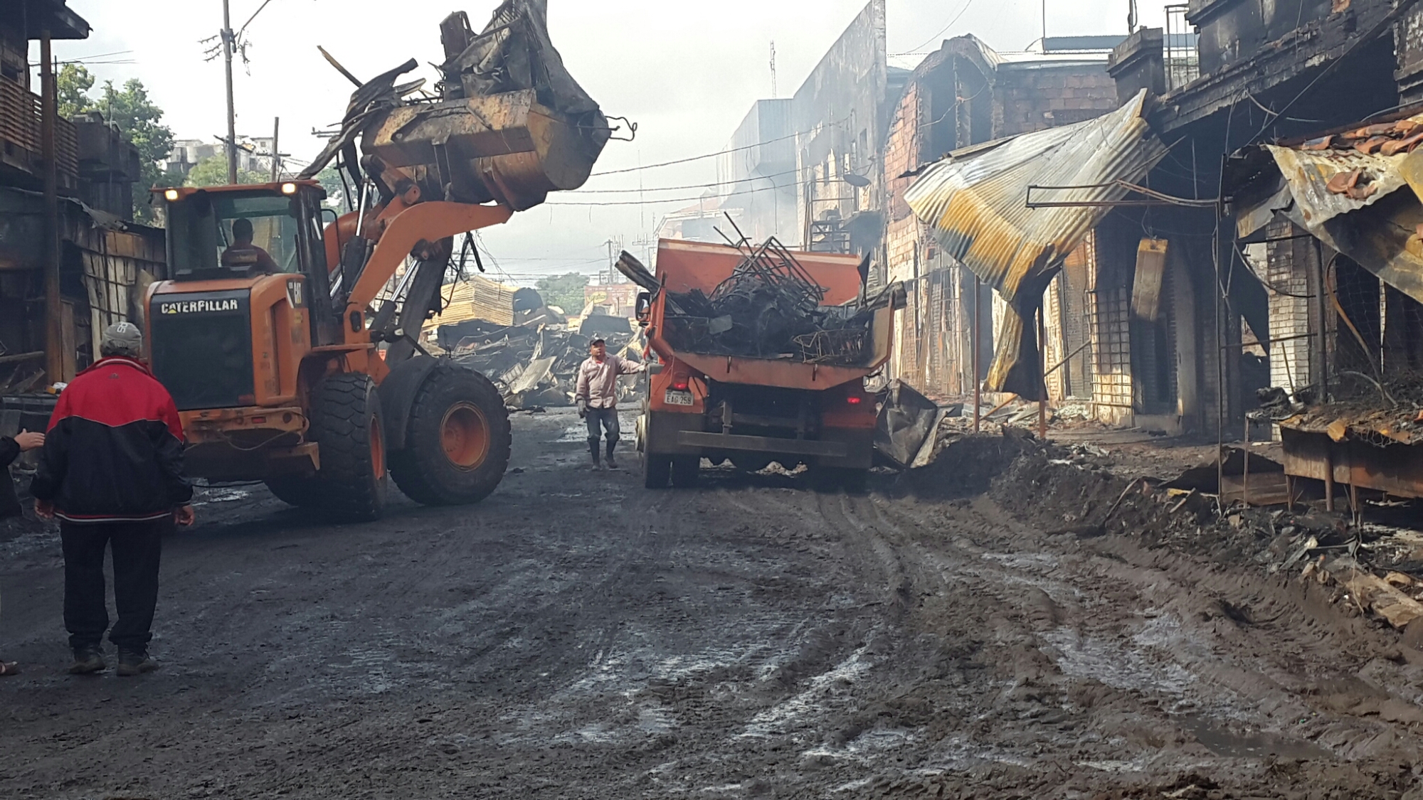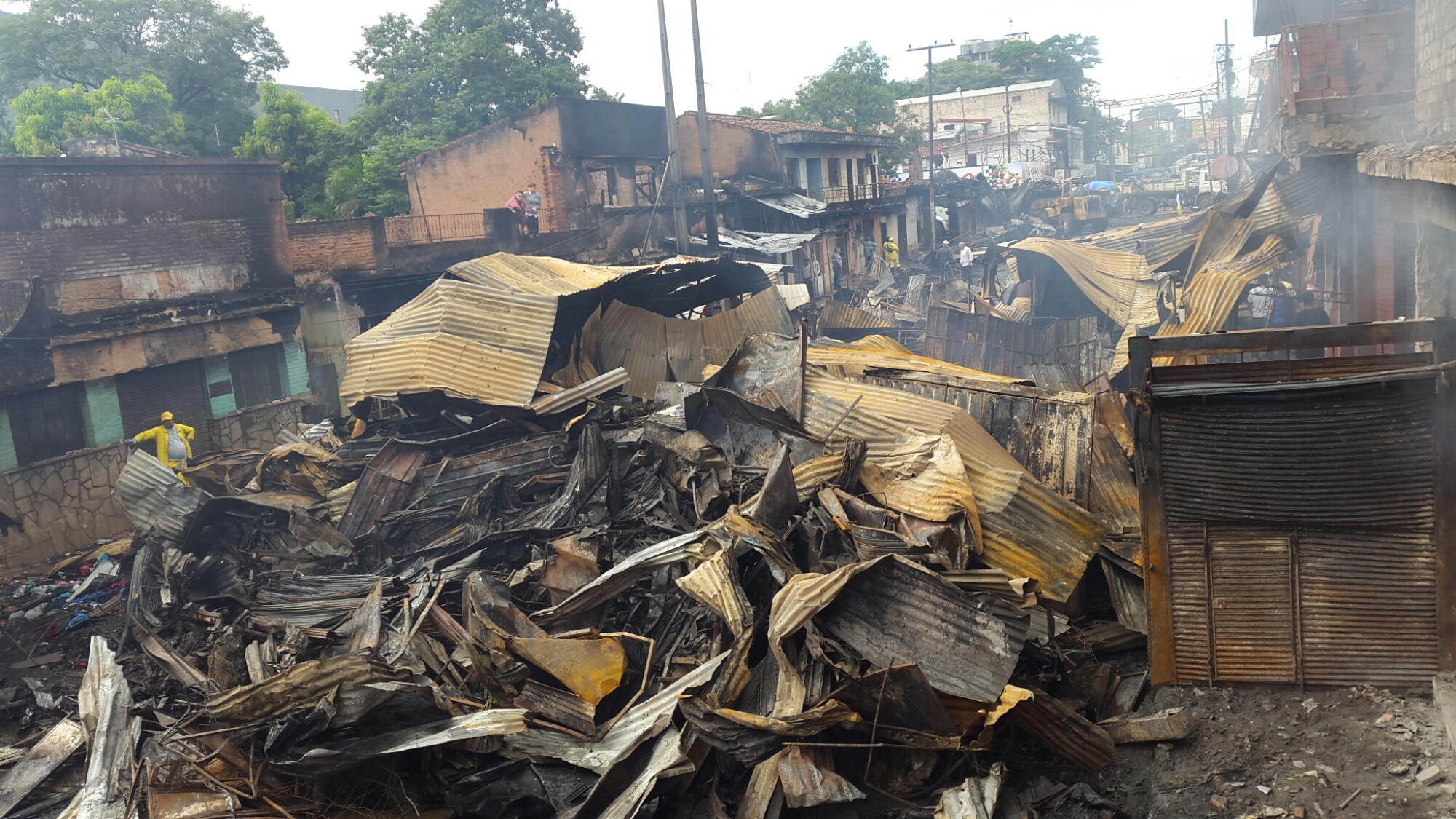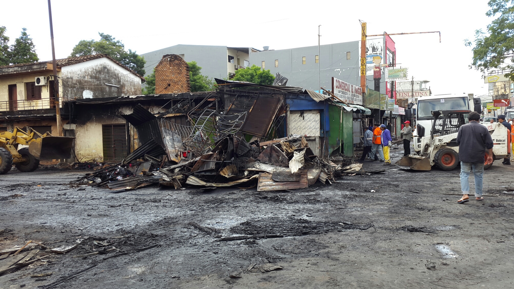 Las imágenes muestran lo que el fuego destruyó sobre la calle Gral. Caballero entre Mcal. Estigarribia y Julia Miranda Cueto.