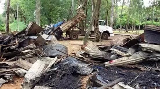 A éstas horas funcionarios y maquinas de la municipalidad se encuentran limpiando la mencionada arteria que ayer fue siniestrada. Por otro lado se puede observar a gente que se dedica al reciclaje buscando materiales que puedan servir para vender.