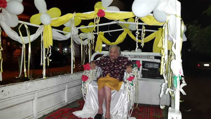 La homenajeada llegó hasta la capilla en una camioneta especialmente ornamentada, donde el cura párroco de la parroquia Virgen de los Remedios, padre Vicente Segovia, ofició una misa de acción de gracias por pedido de la misma cumpleañera, quien meses atrás aprovechó una visita del sacerdote para pedir la realización de una ceremonia religiosa en el día de su cumpleaños que fue ayer martes.
