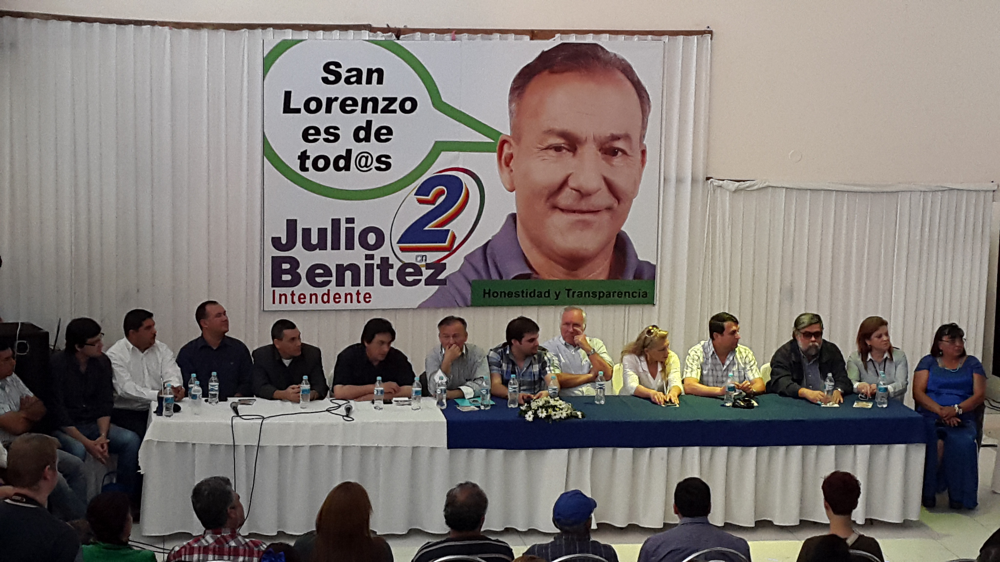 TRANSPARENCIA CON RENDICIÓN DE CUENTAS EN FORMA PUBLICA. Por su parte el candidato a intendente de os liberales Lic. Julio Benitez, pidió cantar entre todos la canción “Patria Querida”, luego destacó que su gobierno municipal se caracterizará por la transparencia en el manejo de los fondos públicos diciendo que rendirá cuentas en forma periódica en lugares públicos, transparencia en la gestión, informe a la ciudadanía en que se gasta cada guaraní de los contribuyentes en audiencia pública y hay otra cosa que voy a hacer, en medio de la plaza voy a informar rubro por rubro, guaraní por guaraní en que se gastó el dinero del pueblo, Uds van a estar informados, luego firmó un documento de compromiso que contiene cuatro puntos. 1) se compromete a administrar los fondos públicos con transparencia y equidad para destinar los rubros en bien de la ciudad. 2) Compromiso de luchar contra todo acto de corrupción en la administración municipal. 3) La presentación de declaración de bienes en el primer día de la asunción al mando y a la vez exigir a quienes ocuparan cargos de confianza del gobierno hagan lo mismo. 4) Gobernar en forma inclusiva sin distinción de banderías políticas, religión o raza.
