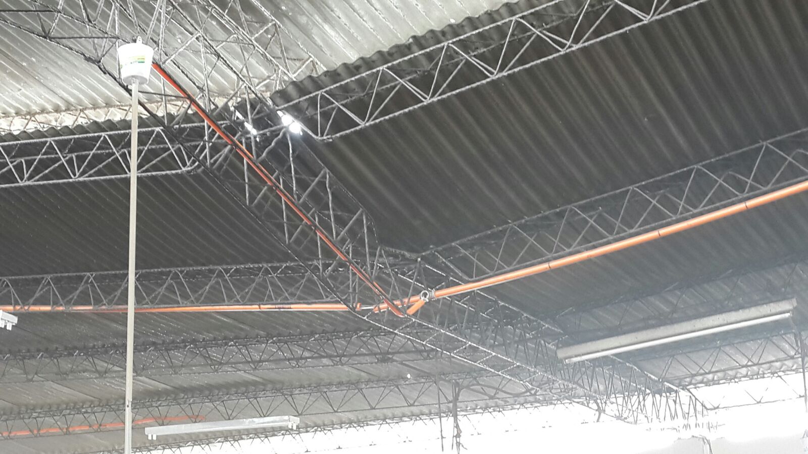 El techo del comedor del mercado de San Lorenzo, esta a punto de desplomarse sobre la cocina del edificio que se encuentra en el medio del establecimiento de compras municipal. Al parecer cedió las vigas de metal que en abril de este año fue alcanzado por el incendio. (ampliaremos)