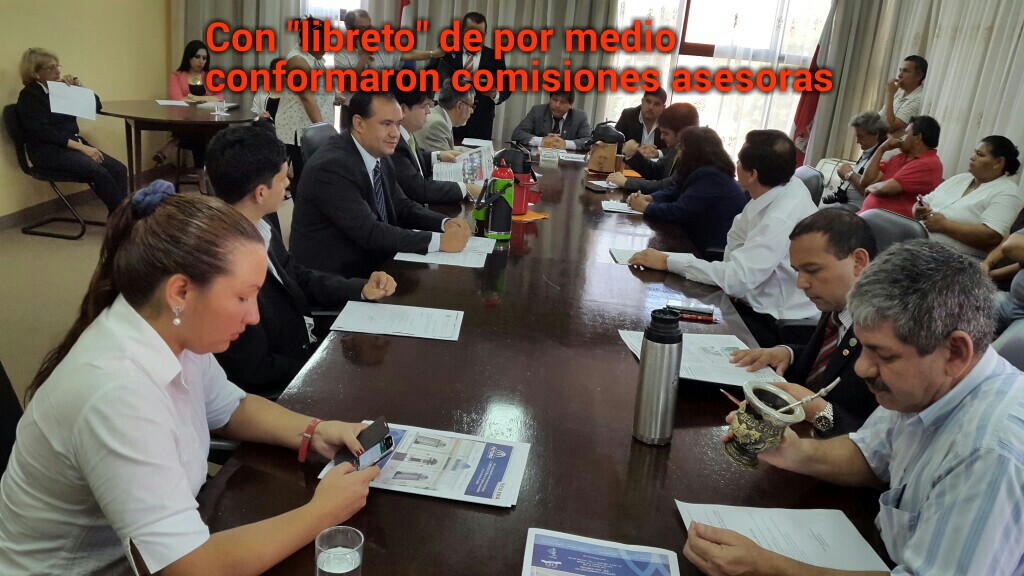 La primera sesión ordinaria del periodo 2015-2020 de la Junta Municipal fue ayer martes donde en el tercer punto del orden del día se dio tratamiento a la elección de presidentes e integrantes de las comisiones asesoras. Una vez abierto el debate, fue el concejal liberal Ovidio Ortiz, quien pidió la palabra para luego proponer nombres no solamente para presidentes sino también trajo todos los nombres de integrantes de las principales comisiones, dejando fuera de su lista a los concejales Lidio Domínguez (ANR no cartista), y Federico Franco PLRA), así como a la concejala Dorotea Villarreal (PLRA).