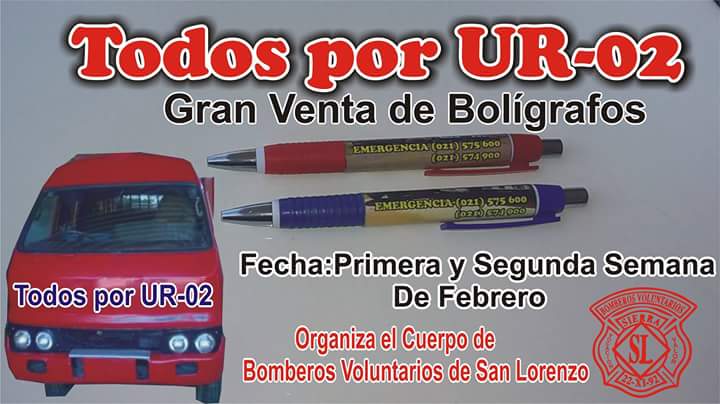recurrirán a la venta de bolígrafos y llaveros con la intención de generar recursos económicos para la reparación de un móvil al que consideran histórico ya que fue el primero en servicio en San Lorenzo. Los socorristas recurren a este tipo de actividades ya que prácticamente no reciben ayuda de la Municipalidad local.