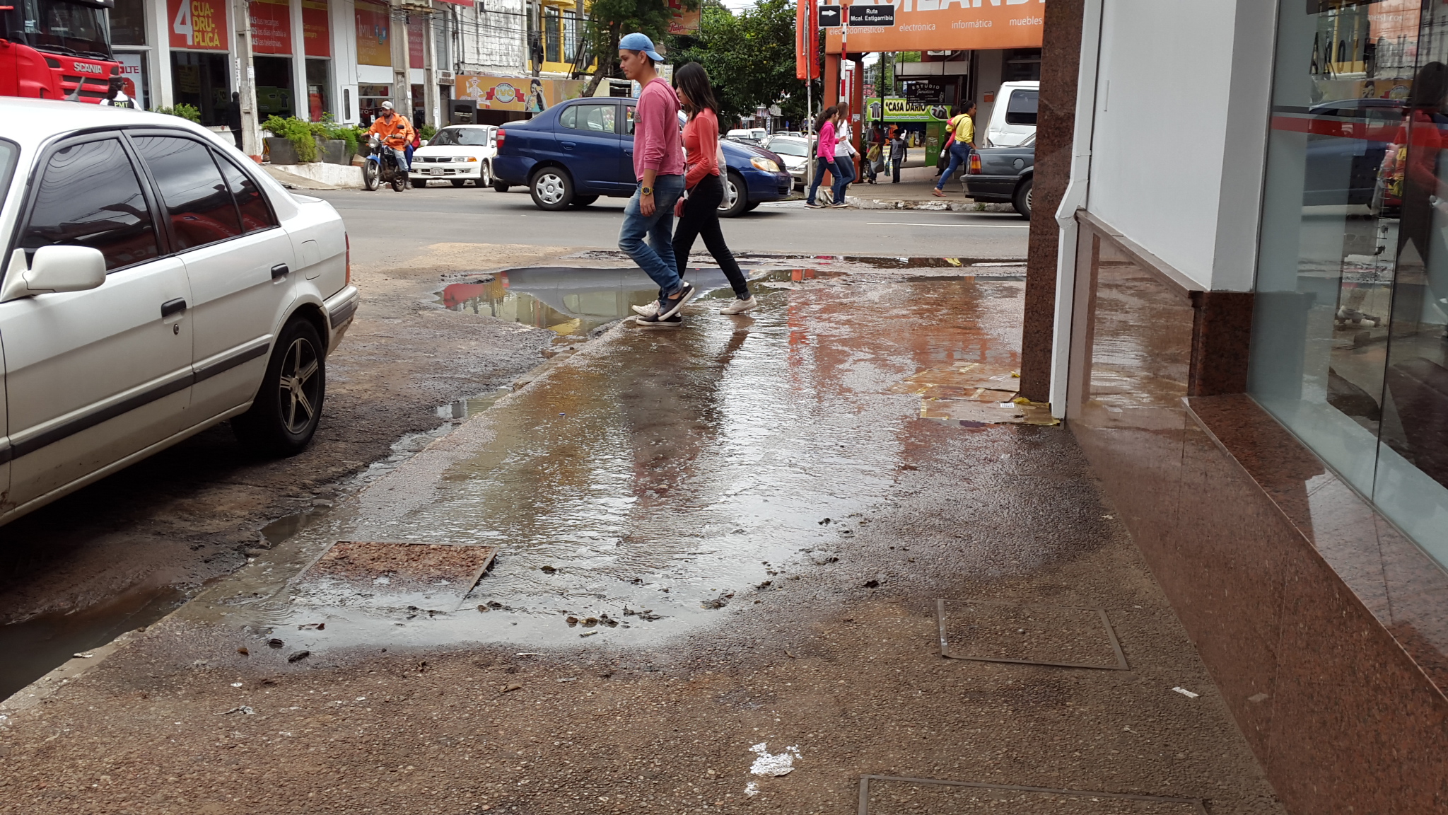 El «raudal» de aguas negras que de forma continua sale desde hace varios días por el registro de la ESSAP ubicado en la esquina de Ruta Mcal. Estigarribia y España es insoportable y no sólo baja por la calle España sino también gira por la Ruta hasta Cnel. Romero para luego ir a parar al cauce hídrico del arroyo San Lorenzo. Desde nuestra página nos pusimos en contacto con Raúl Rodriguez Rolón, jefe de operaciones de la sub estación de la ESSAP de San Lorenzo, quien nos dijo que ellos están para solucionar pérdidas de caños rotos de agua potable. No obstante prometió ponerse en contacto con el responsable de la central de operaciones de Asunción para que envíen lo más pronto posible a una cuadrilla para destrabar el sistema de alcantarillado colapsado. La promesa es que hoy mismo será solucionado el problema que afecta no sólo a vecinos sino también a los numerosos peatones que cruzan por el lugar.