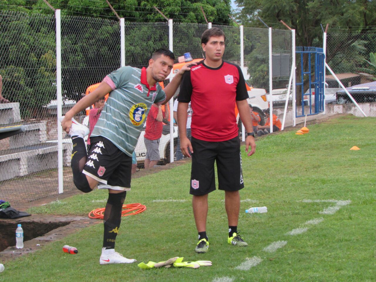 En la imagen el preparador de arqueros Herminio Barrios y el experimentado portero Wilson Quiñonez. (Imagen gentileza, Enrique Chuquito" Ramos)