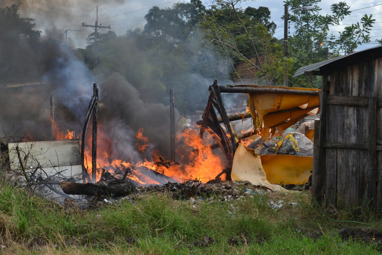 El incendio se produjo en un depósito de reciclaje ubicado en avenida De la Victoria y Córdoba de Reducto, cuando una vecina quemó malezas de un terreno adyacente al depósito y el viento colaboró para que el fuego alcance algunos materiales de rápida combustión. Acudieron dotaciones de bomberos voluntarios de San Lorenzo, Capiatá y Ñemby. No hubo heridos pero si daños económicos para la propietaria. (Imágenes e informe: V.F)