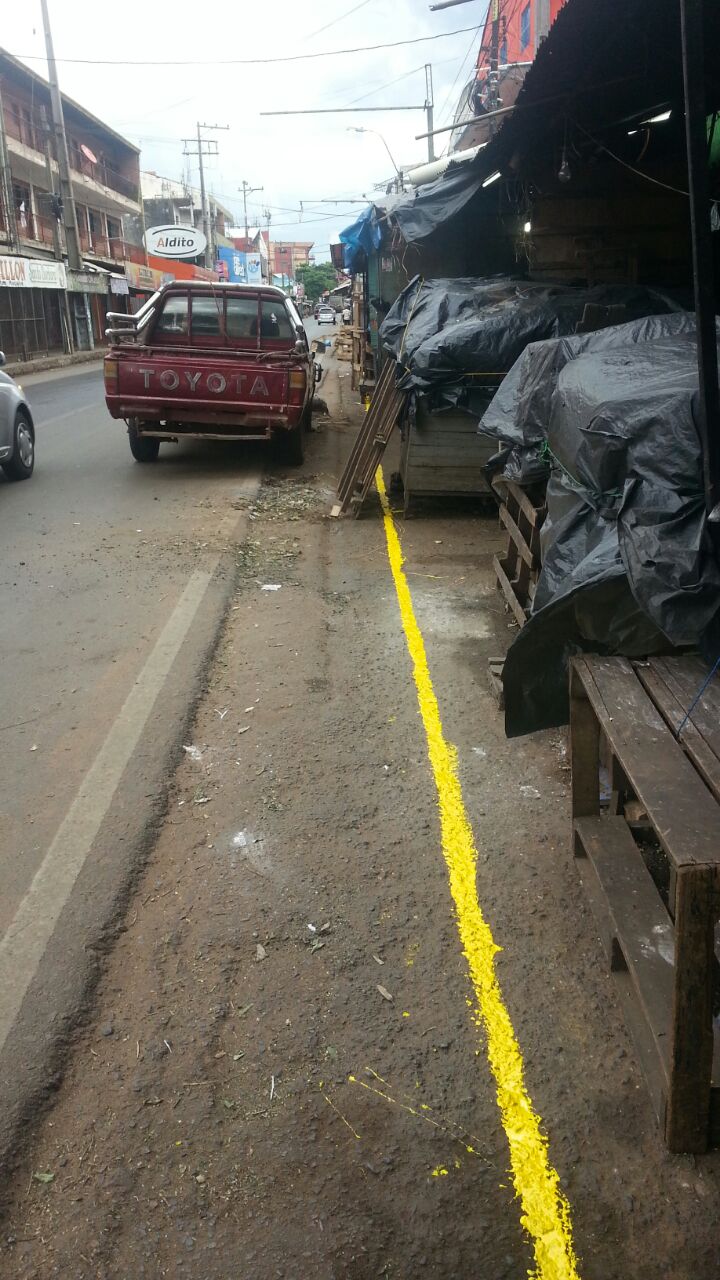 Ayer domingo varios vendedores que tienen sus puestos sobre la calle Julia M. Cueto desde España hasta Sgto. Silva, trabajaron para dejar más espacio libre sobre el asfalto de dicha arteria, para ello pintaron una franja de color amarillo que está a una distancia de más o menos a 70 cm del cordón de la vereda. Con esta acción lo que buscan es cumplir con la promesa hecha en una reunión llevada a cabo la pasada semana con el concejal Nelson Peralta y otros funcionarios de la Municipalidad de San Lorenzo. (Imágenes gentileza Elena Baez).
