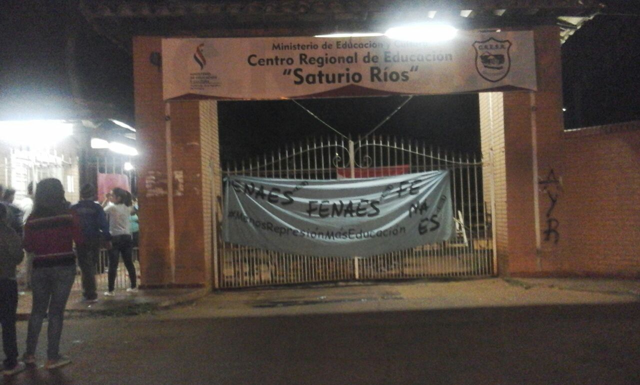 «Estamos teniendo gente que están ingresando en el colegio, ya rompieron unos vidrios, de por si esto ya pasó anteriormente, ahora hay cerraduras forzadas y nos llama demasiado la atención que el celador está adentro en dirección general creo que eso no debería estar permitido y vamos a llamar a la fiscalía también para que se haga lacrar la institución ya que hay un antecedente», dijo una de las alumnas que que se encuentra dentro de la institución.
