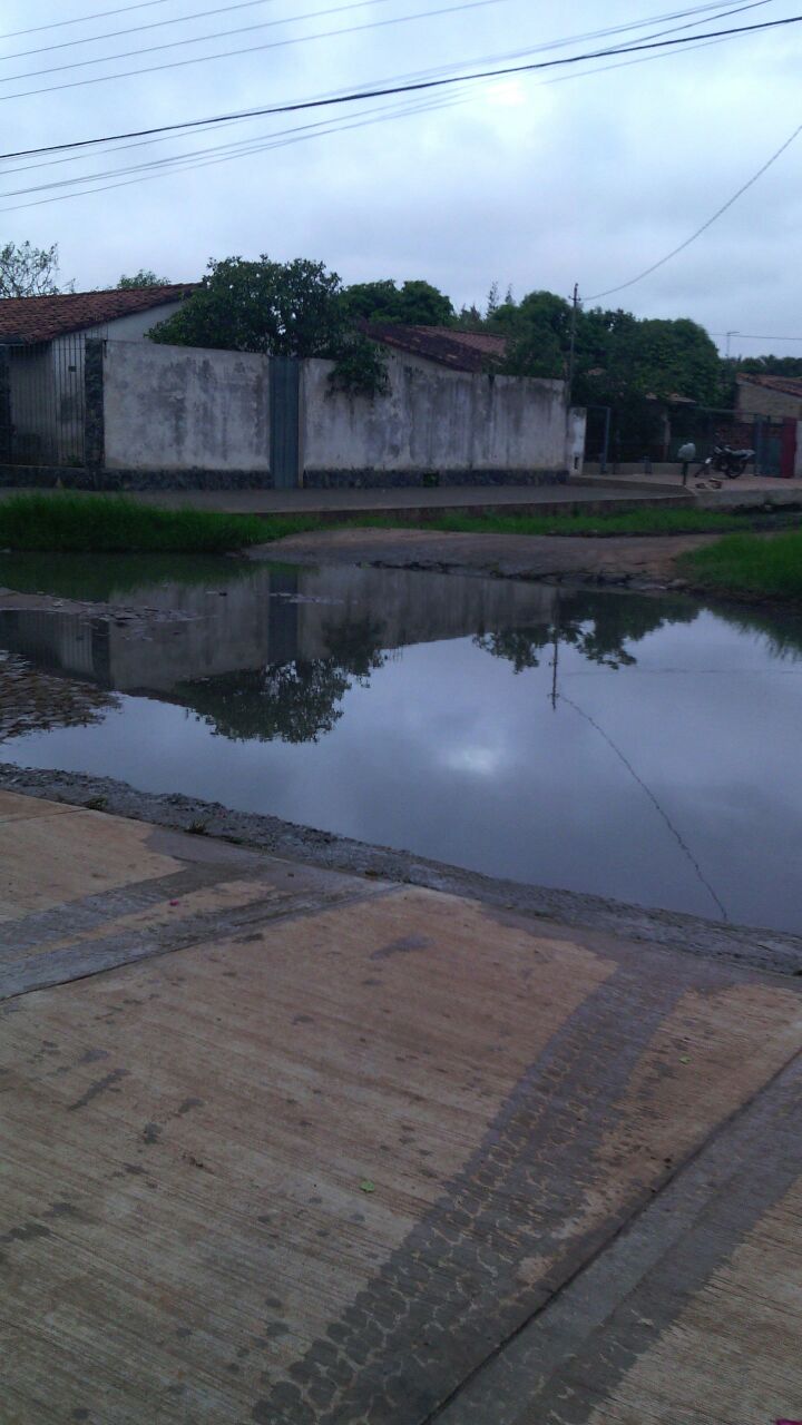 Vereda y calle convertida en laguna de cloaca