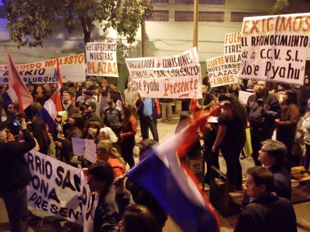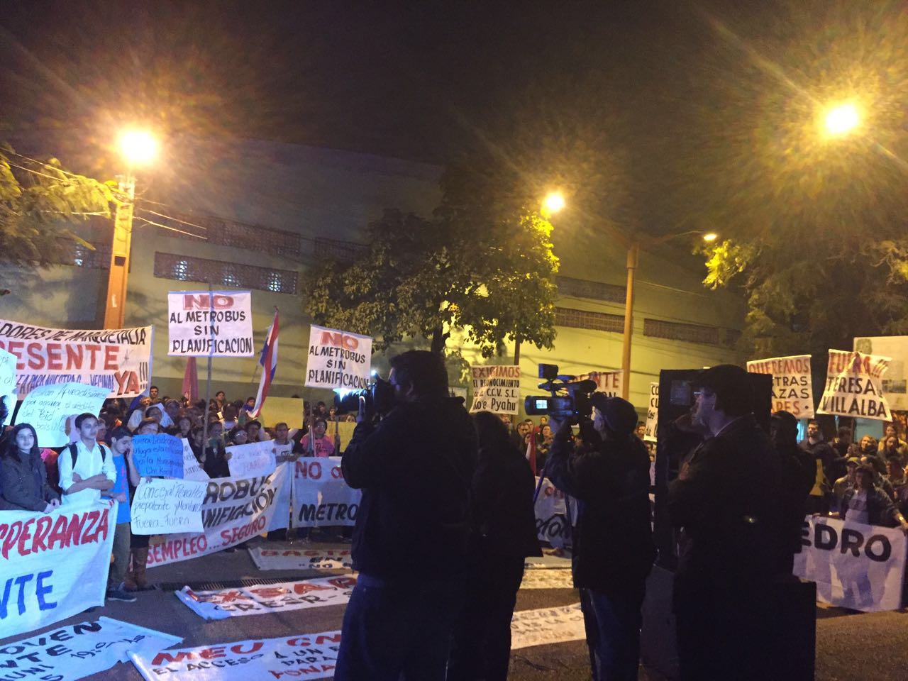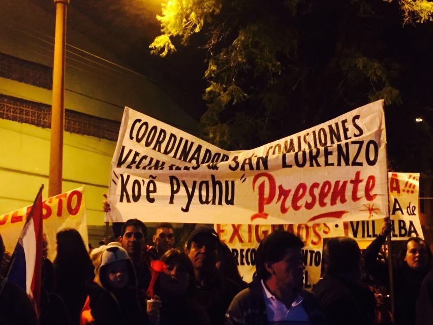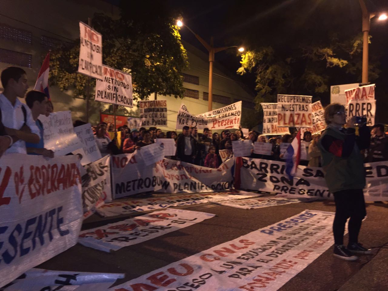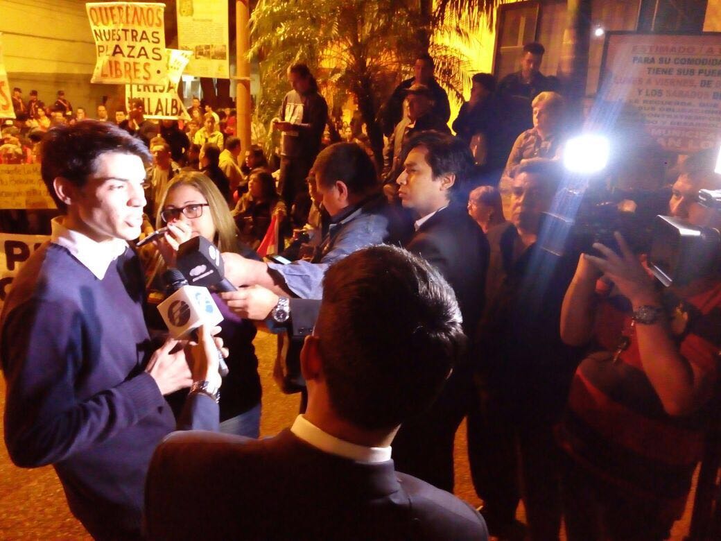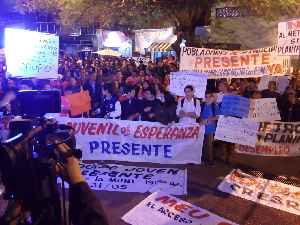 Comisiones vecinales, jóvenes estudiantes, frentistas de Julia M. Cueto, organizaciones de la red social del Facebook y familias que se llegaron hasta frente a la Municipalidad de San Lorenzo llegaron anoche para manifestar el “Che Kuerái” (estamos hartos) de la gestión del colorado Albino Ferrer y su equipo que desde hace ocho años cuyos resultados no convence a los pobladores, “nosotros desde comisiones vecinales, estudiantes, universitarios, familias en general, todos los que componemos la ciudad de San Lorenzo tenemos el derecho de saber qué pasa con nuestra plata, como se administra nuestros recursos», dijo el joven Pastor Filartiga.