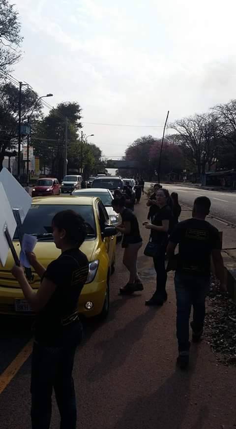 Estudiantes del 4to año de ingeniería comercial de la Universidad San Lorenzo armaron y llevaron a cabo un proyecto sobre “Educación de Seguridad Vial” para prevenir accidentes. La práctica incluyó muestra de carteles de señales de tránsito, reparto de volantes educativos (hecho por ellos) y la realización de una encuesta a conductores.