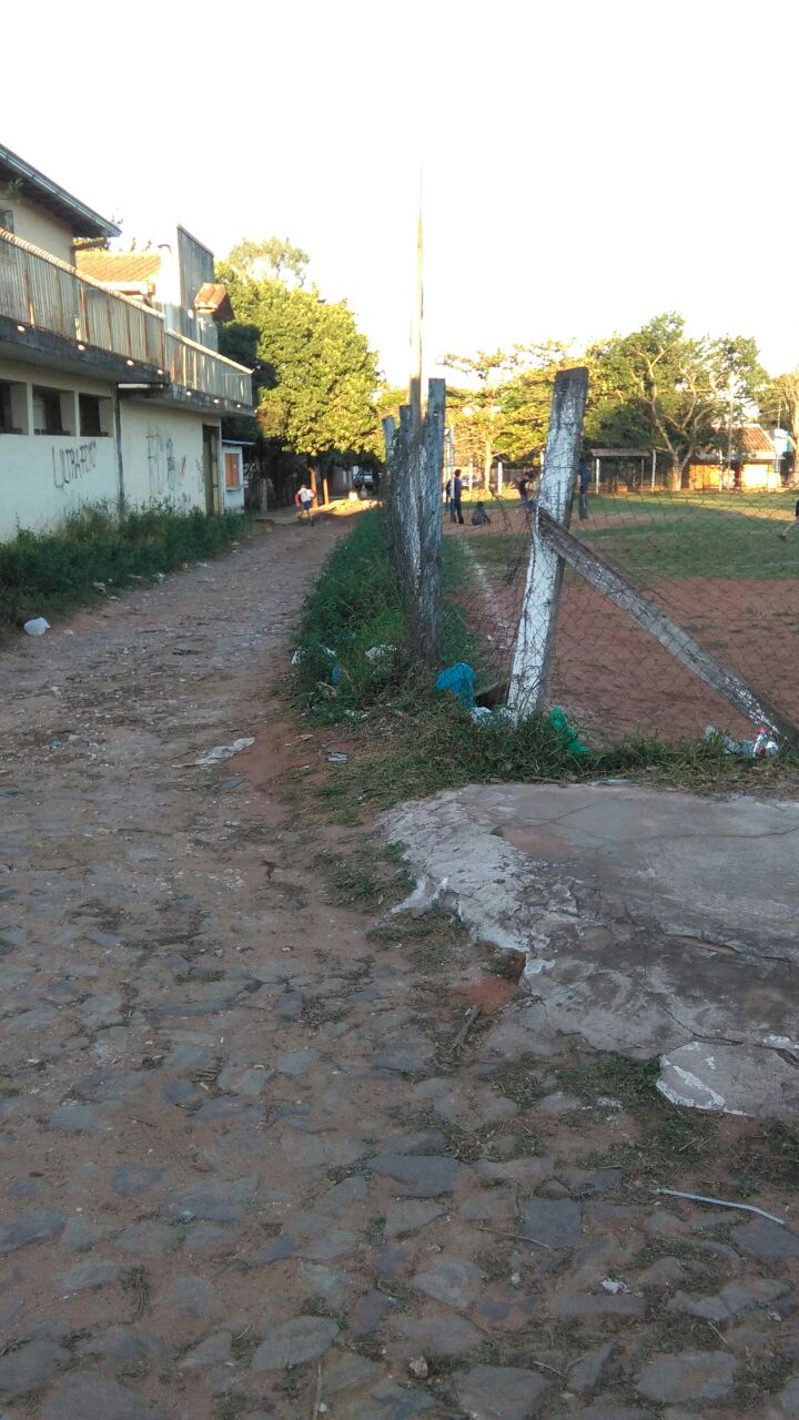 CANCHA OCUPA VEREDA Y GRAN PARTE DE UNA CALLE. El mencionado club se apoderó de la plaza pública desde hace años y con el tiempo debió agrandar su estadio para ajustarse a los requisitos de la Liga Sanlorenzana de Futbol. Así sacó uno de sus arcos hasta una de las veredas alambrando la misma y en otro costado ocupa parte de la calle dejando apenas un pasillo para la circulación de los vecinos.