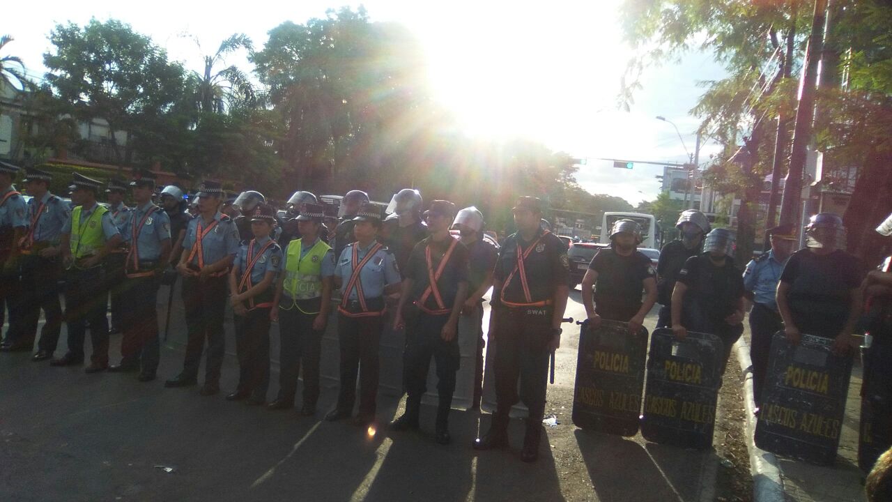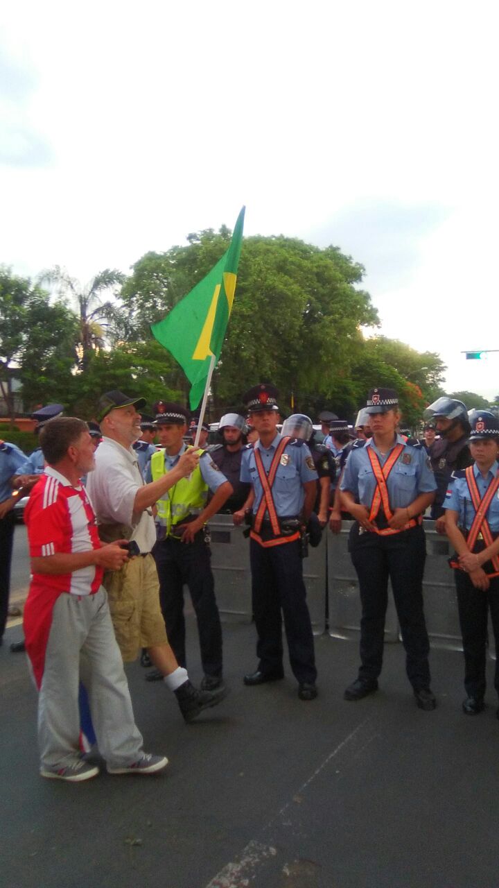 “Nosotros vamos a persistir, vamos a quedarnos a dormir en la vereda de la Recoleta, porque ellos quieren ya meternos en la Recoleta, acá están los votos de Cartes”, dijo Payo a algunos automovilistas que pasaron por el sector donde están frente a una dotación de cascos azules. La delegación iba caminando por la vereda de la recoleta rumbo al microcentro de Asunción, pero una dotación de policías cascos azules los detuvo.