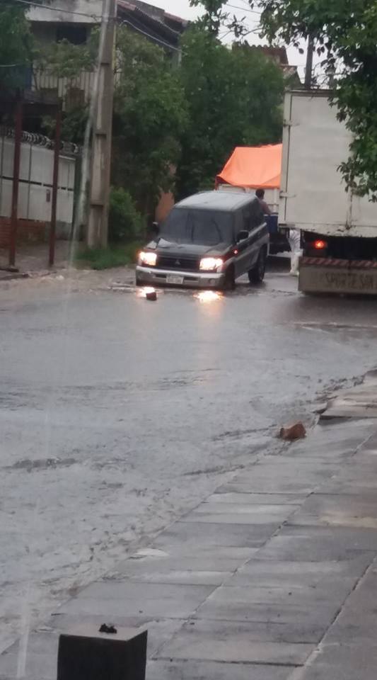 La intensa lluvia que cae desde esta mañana en gran parte del país hace que calles y avenidas sean un peligro tanto para peatones y conductores de móviles. En este sentido San Lorenzo no está ajeno al peligro de que cualquier persona a pie o algún móvil caiga en algunos de los muchos «cráteres» que hay en las arterias de la ciudad.