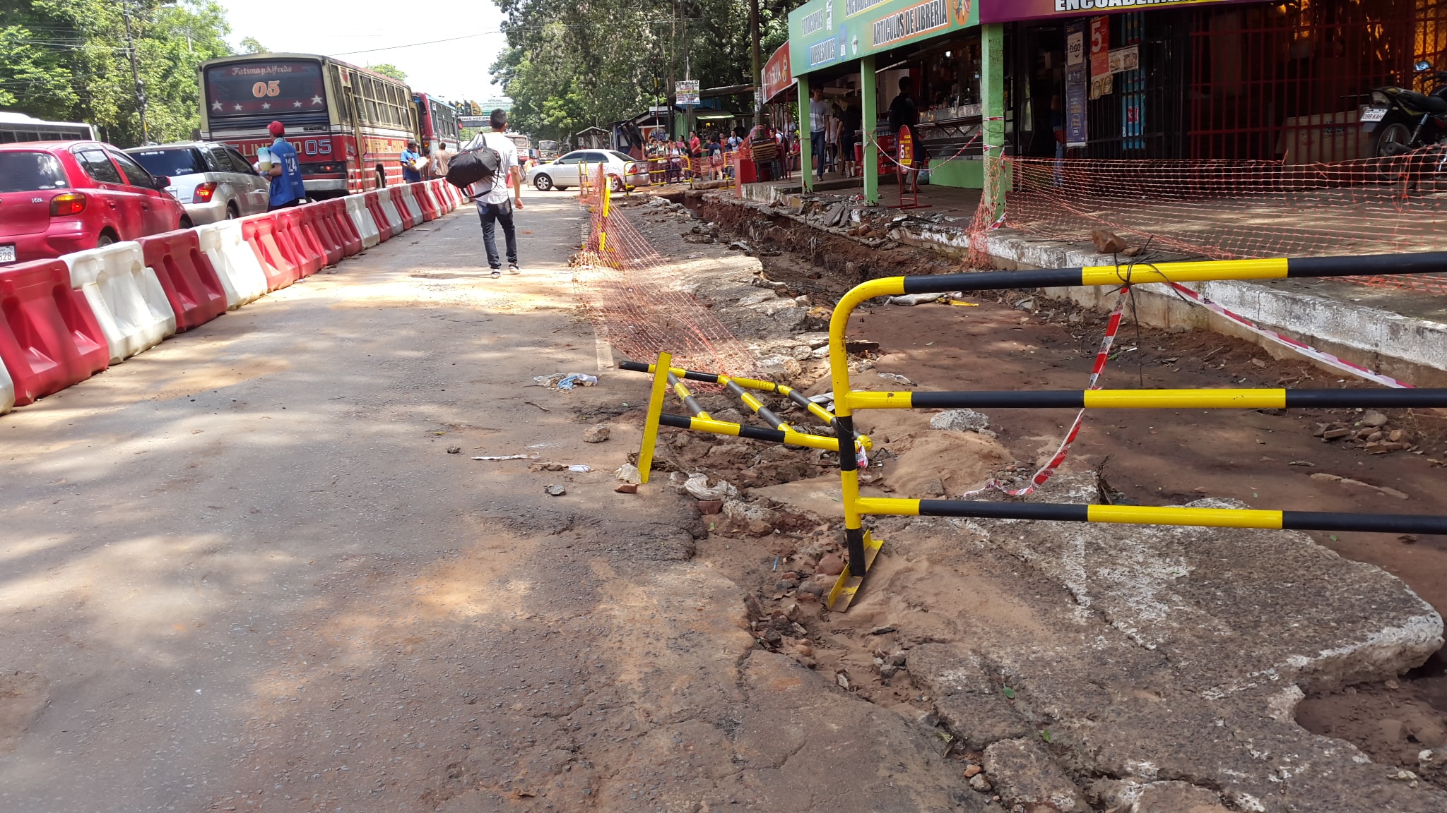 LAS OBRAS EMPEZARON EN ENERO. Los trabajos del Metrobus frente al Campus de la UNA empezaron hace tres meses y consiste en instalar bajo tierra tubos por donde irán cables de energía eléctrica, telefonía fija y de celulares, en paralelo también se debe realizar la instalación del sistema de alcantarillado sanitario y la reposición de la calzada con mezcla asfáltica en tramos de tres cuadras. Todos estos trabajos deberían concluir en menos de tres días (según dijo el ingeniero Reinaldo Medina, de la empresa contratista al diario economía.com.py), sin embargo a tres meses del inicio no se observa grandes avances.