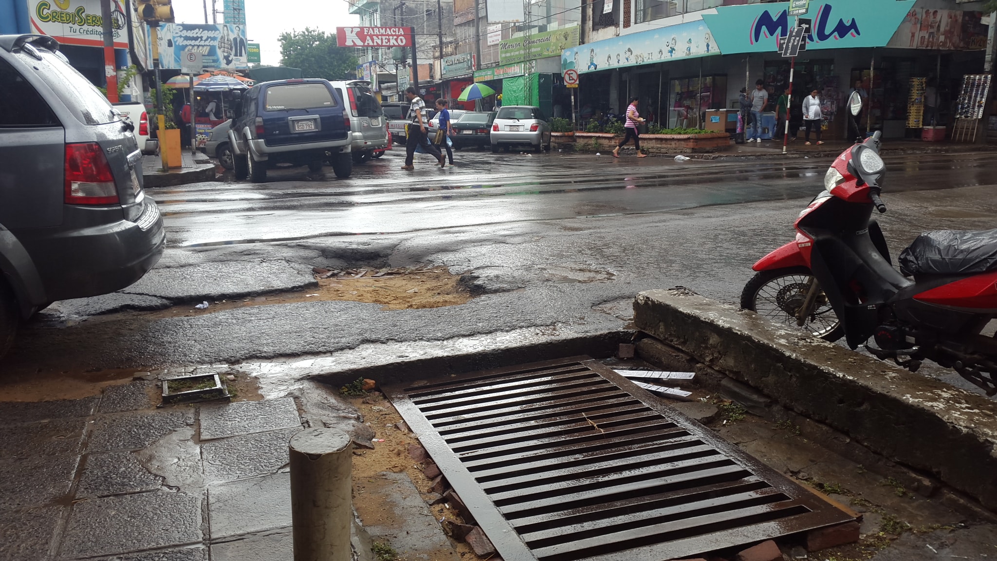 “Los abajo firmantes, comerciantes, vecinos y propietarios de inmuebles de la zona conformada de la esquina de las calles Mcal. Estigarribia y Sargento Slva del microcentro de nuestra ciudad, venimos a poner a su conocimiento y para su atención, a la situación calamitosa que estamos atravesando, debido al taponamiento total y absoluto de la boca de tormenta (desagüe pluvial) que existe en esta esquina”, dice parte del escrito de los vecinos que fue presentado hace un año y dos meses (25 de enero de 2016). En el mismo escrito pidieron la solución definitiva del problema adjuntando fotos de la situación luego de cada lluvia.