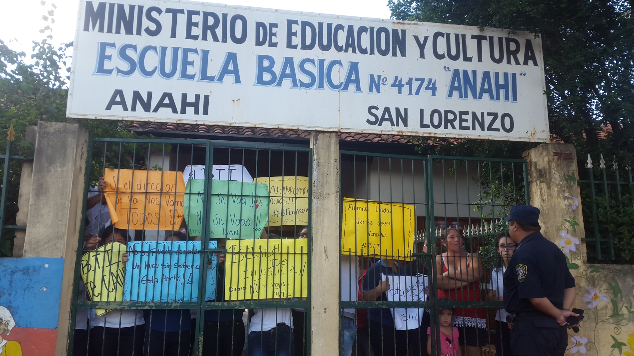 Estudiantes y padres de la escuela y colegio “Anahí I” del barrio del mismo nombre de Reducto San Lorenzo se manifestaron para reclamar atención a sus reclamos de parte del Ministerio de Educación y Ciencias (MEC). Por un lado alumnos del 8vo grado todavía no empezaron las clases, mientras que por otro lado los del Bachillerato Técnico en Informática (BTI) exigieron la vuelta de su director (estaba renunciante), además denunciaron que no tienen computadoras de manera que las clases son sólo teóricas.