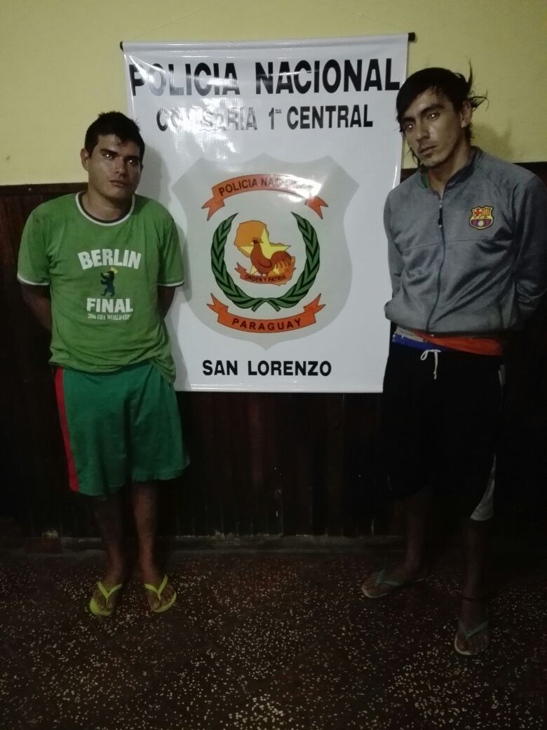 A las 03:00 hora de hoy domingo,  agentes de la Comisaria Primera de San Lorenzo lograron detener a dos sujetos que se apropiaron de objetos que estaban ubicados dentro de un automóvil estacionado en el barrio San Isidro de San Lorenzo.