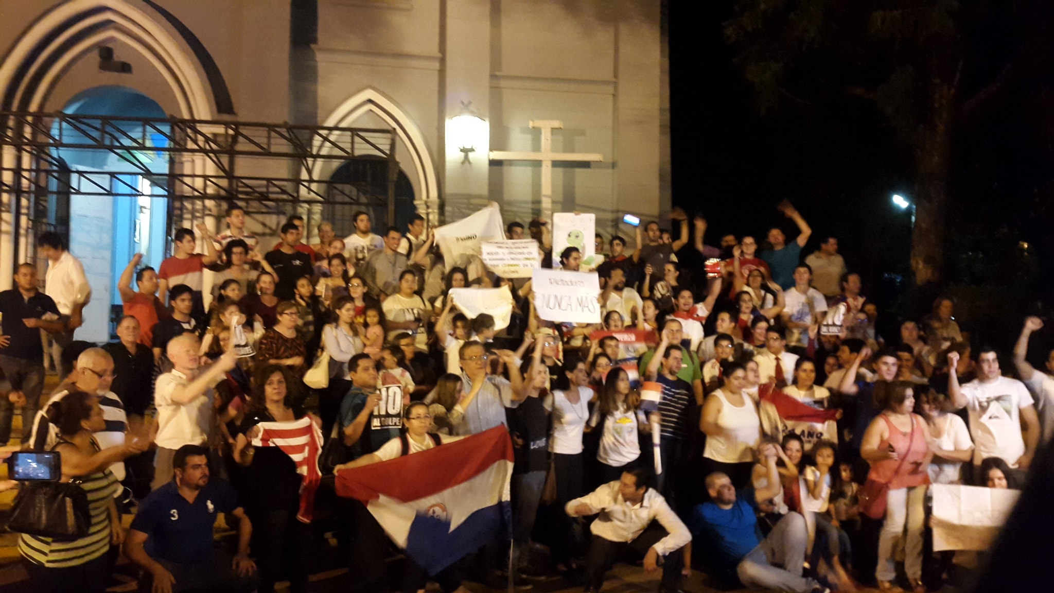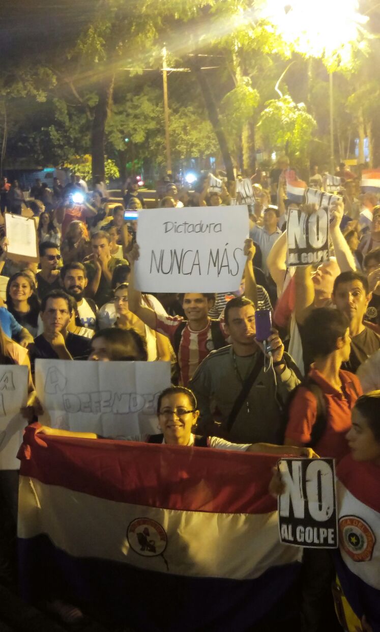 Una marcha convocada por jóvenes de la iglesia católica de San Lorenzo que incluyó dos manzanas alrededor de la Catedral local, con buena participación de ciudadanos, sirvió para dejar sentado el repudio a la violación a la Constitución Nacional y el rotundo rechazo a la posibilidad de instalar una nueva dictadura en el país, “Nuestra firme postura de que NO permitiremos que las intenciones de promulgar y ejecutar un gobierno dictatorial, nepotista y opresor sean las que se lleven a cabo en este país”, señala parte de un manifiesto leído anoche frente al templo sanlorenzano.