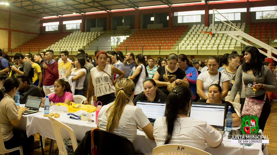 El llamado a la Feria de Empleo resultó todo un éxito, la gente acudió al polideportivo pese al estado del tiempo”, dijo el presidente de la Junta Municipal, Lic. Hugo Lezcano. La actividad estuvo organizada por la Municipalidad de San Lorenzo, la Oficina Nacional de Empleos, dependiente del Ministerio de Trabajo, Empleo y Seguridad Social y la Secretaria Nacional de la Juventud.