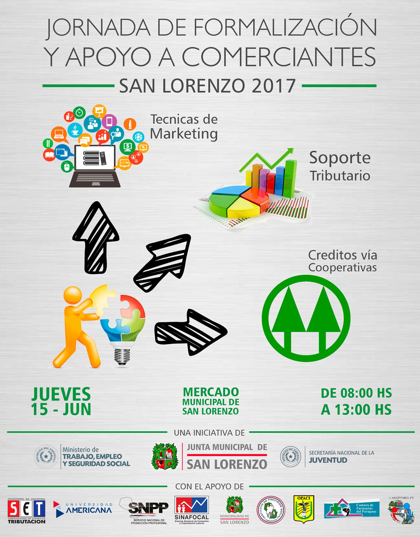 La Municipalidad de San Lorenzo tiene previsto realizar una jornada de formalización y apoyo a comerciantes  ubicados dentro del mercado municipal. Las charlas serán impartidas por técnicos de la Secretaria Nacional de la Juventud y de la Dirección General de Empleos dependiente del Ministerio de Trabajo.