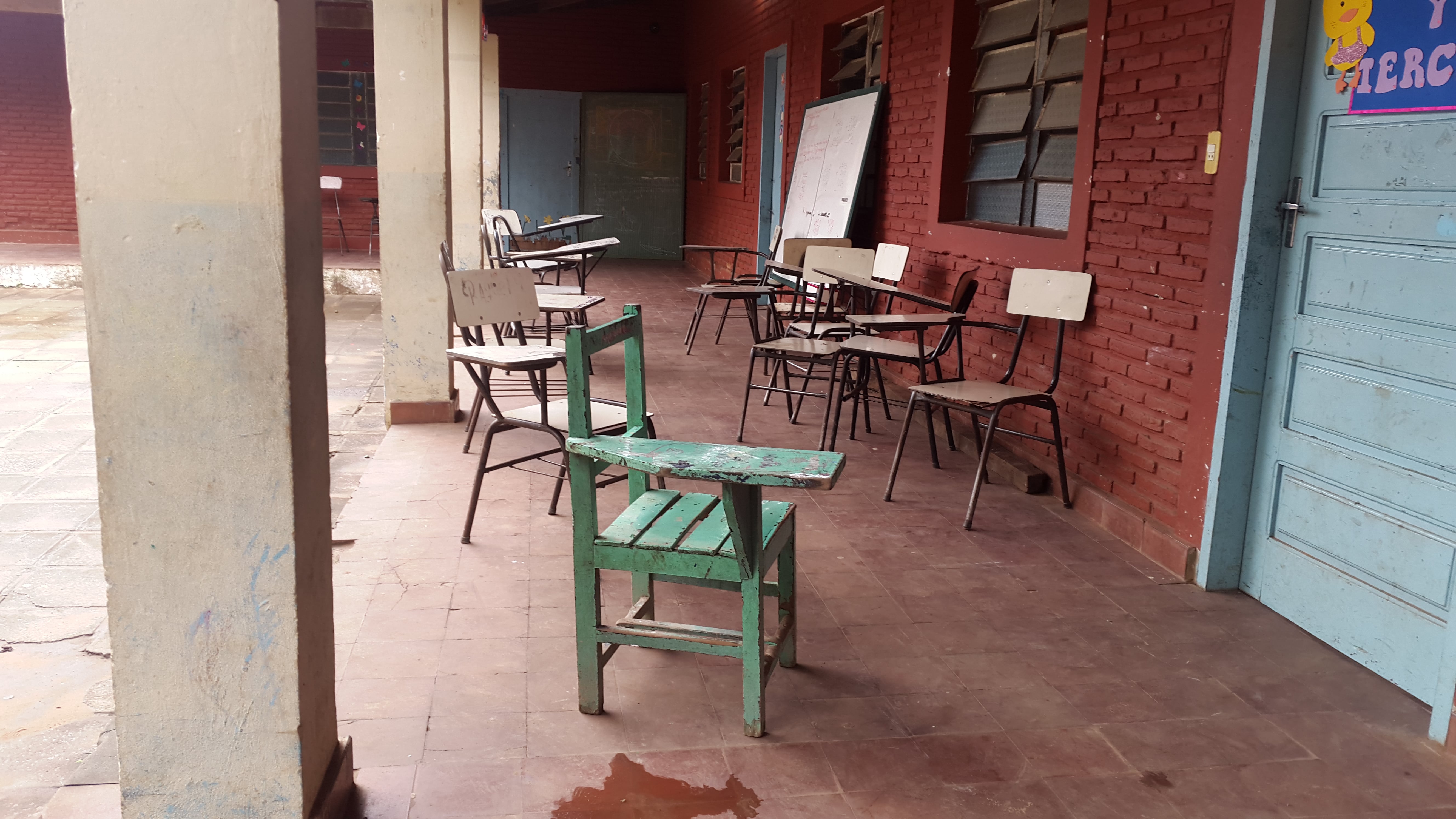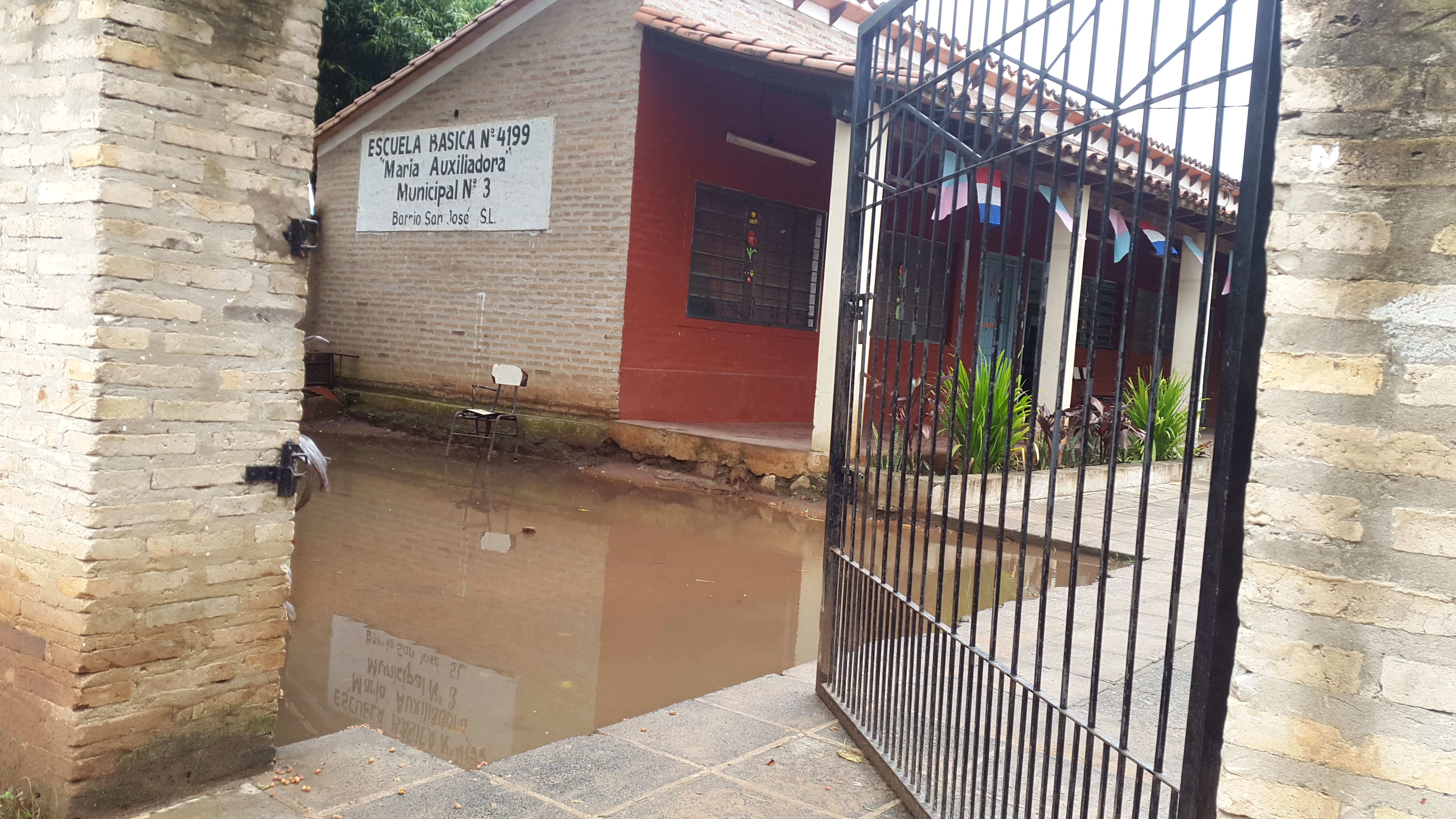 Niños y niñas de la escuela Municipal Nª 3 María Auxiliadora del barrio Santa María de San Lorenzo deben soportar mucha humedad como se puede observar en las imágenes captadas por nuestra página. En esta institución son 105 alumnos que quedaron sin aulas luego de que el MEC clausuró en febrero de este año varias aulas por peligro de derrumbe.