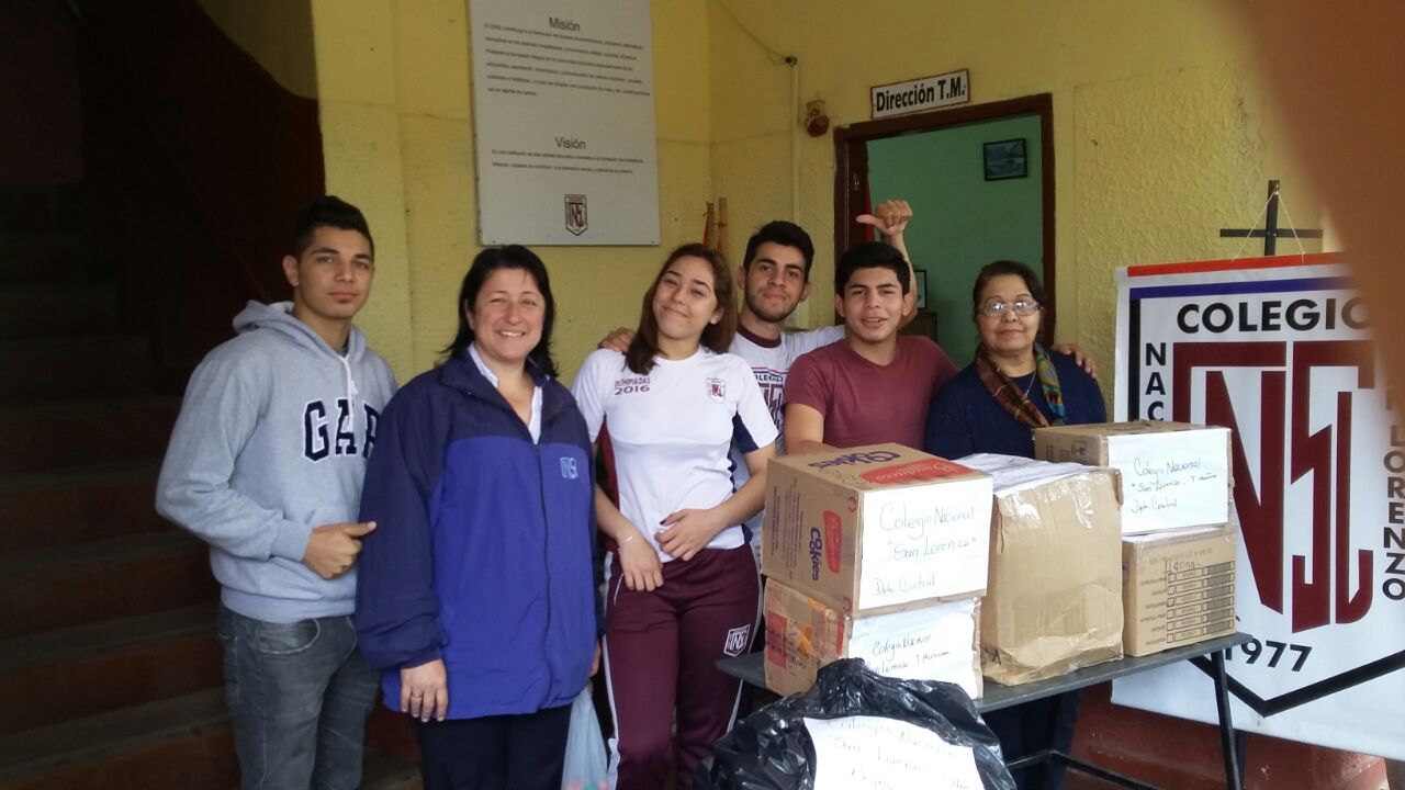 La situación de la gente de los departamentos de Misiones y Ñeenbucú por la crecida de los ríos y afluentes debido a las últimas lluvias registradas, hizo que la Coordinación Departamental de Supervisiones Educativas del Departamento Central con las Supervisiones e Instituciones Educativas del MEC se unan en una Campaña Solidaria que se realizó desde el 2 hasta el 16 de junio, donde juntaron varias toneladas de abrigos y alimentos no perecederos. Lo recaudado llenó varios salones del Colegio Nacional San Lorenzo.