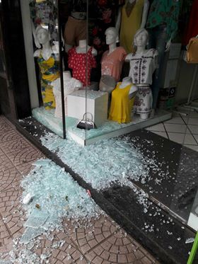 La imagen que se muestra en la foto es apenas una de las varias vidrieras que se hicieron trizas a causa de piedras que salieron lanzadas al pasar un vehículo encima de uno de los numerosos baches existentes en San Lorenzo. Según nos confirmaron en la cuadra de Ruta Mcal. Estigarribia entre Cnel. Romero y España ya hubo tres comercios que sufrieron la misma consecuencia.