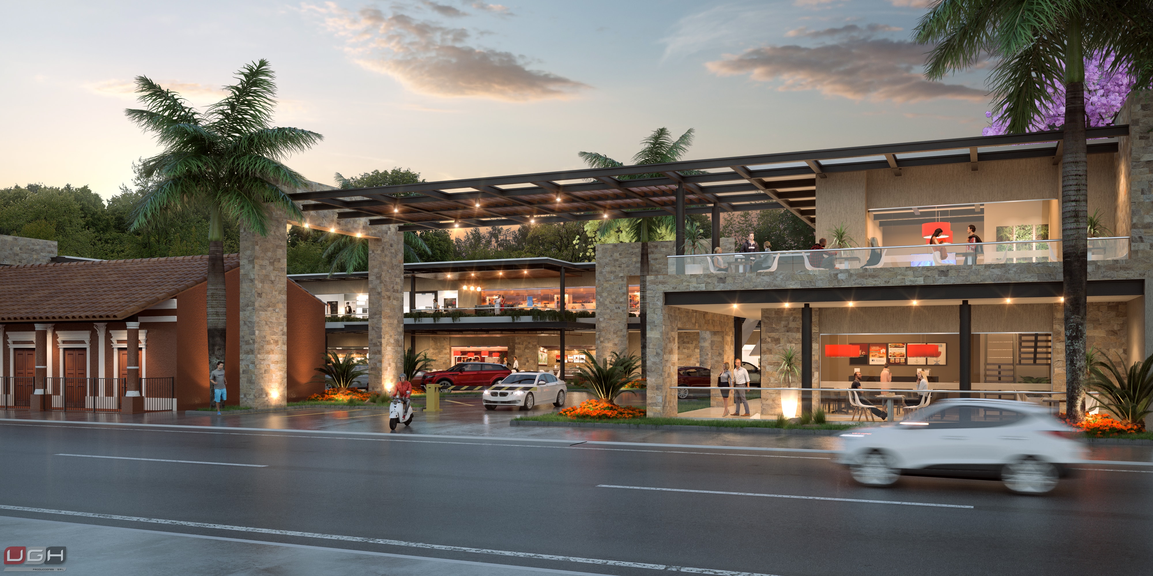 La estructura del complejo contará con estacionamientos de vehículos en planta baja y alta que incluye zonas exclusivas para ascenso y descenso de personas con discapacidad, rampas y ascensores. Todo el área estará equipado con circuito cerrado, sala de monitoreo y música funcional.