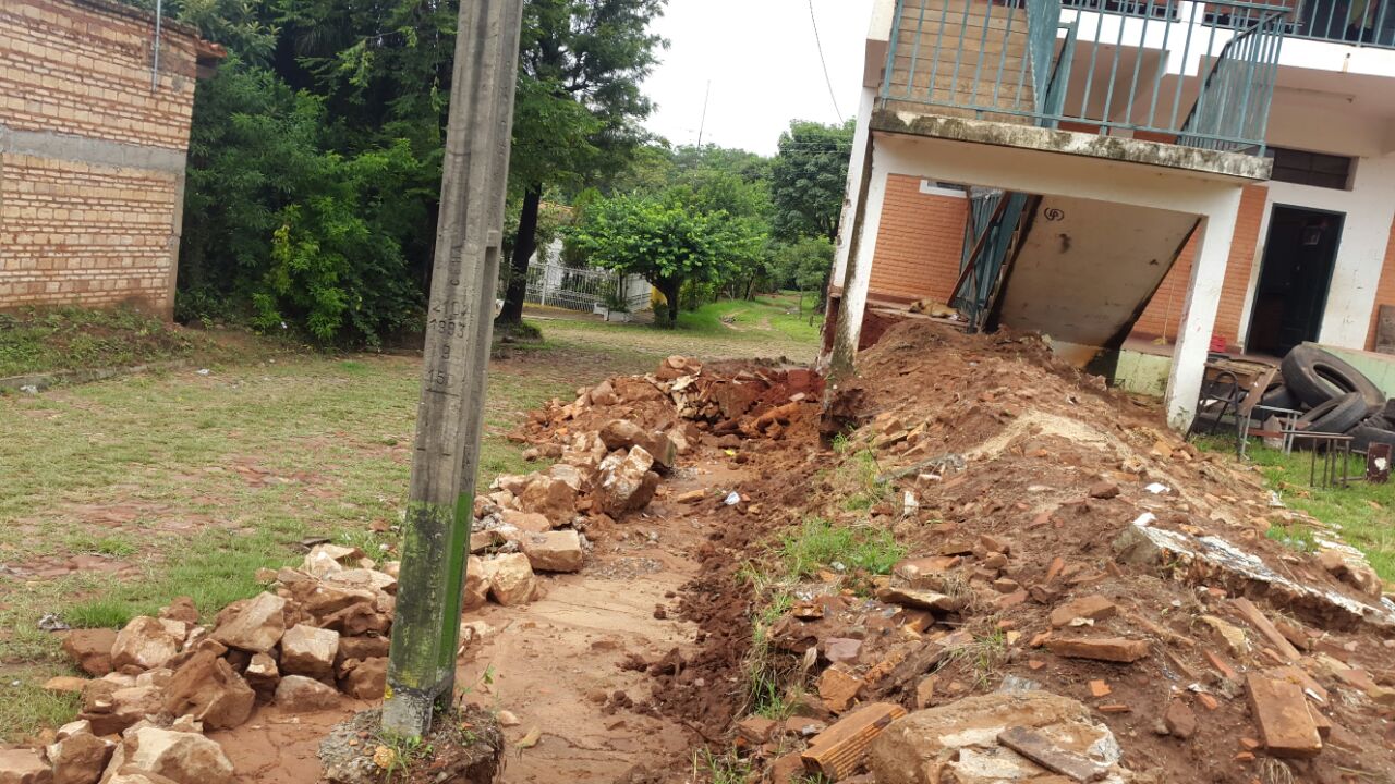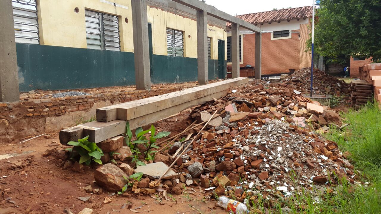 Por otro lado Daniel Galeano, quien manifestó ser el responsable de la obra justificó el desorden porque una sub contratista no cumplió con lo pactado y que por el contrario llegaron a hacer mal algunas columnas, es por eso que decidieron terminar el trato. Prometió que una vez que llega materiales para el techo aceleraran los trabajos de las futuras aulas así como el de la muralla que ya pone en peligro parte del bloque que corresponde al colegio.