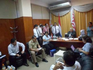 Participaron de la reunión la Directora de la XI Región Sanitaria Dra. Berta Cálcena, El Director del Hospital de Calleí Dr. Félix Brizuela, Presidente de la Junta Alcibíades Quiñones, Concejal Ramón Gill, , SENEPA, Emergencia Nacional, representante de la Jefatura de Policía de San Lorenzo entre otros.