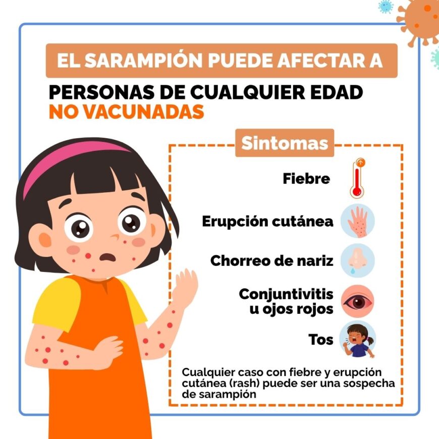 Los síntomas incluyen fiebre, erupciones cutáneas extensas, tos, conjuntivitis y secreción nasal. En caso de presentarlos, se recomienda acudir de inmediato a un centro de salud, usar mascarilla quirúrgica y reforzar las medidas de higiene, especialmente el lavado frecuente de manos.
