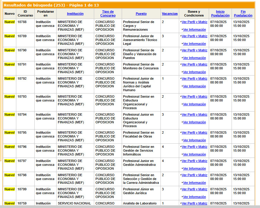Un total de 30 vacancias distribuidas en diferentes dependencias de la institución del Ministerio de Economía y Finanzas.