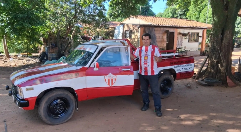 Un vecino del barrio Mita’i, en la zona de Reducto de San Lorenzo, decidió demostrar su fanatismo por el 13 de Junio de una manera muy particular: pintó su camioneta con los colores rojo y blanco del club.